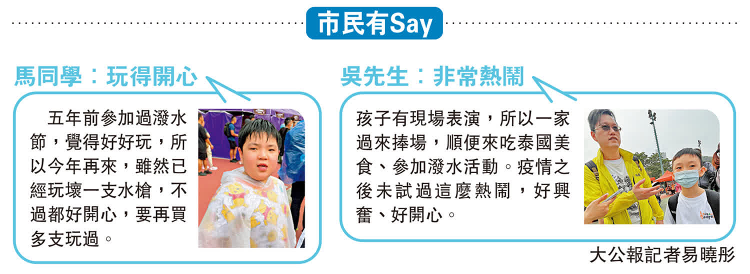 市民葉先生第一次參加潑水節,提前幾日領取嘉年華攤位的門票,帶同一家四口齊參與,大讚現場氣氛非常好,「急不及待想試食泰式小吃和參加水戰」。