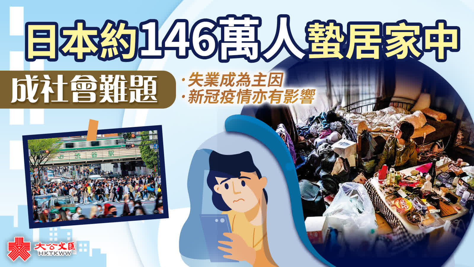 大公報綜合NHK、CNN報道:日本有一部分脫離社會,常窩在狹小空間裏不上學、不上班,過着封閉生活的人被稱為「蟄居族」。日本內閣府近日發表的最新調查顯示,全日本15歲至64歲生產力族群中,有多達146萬人處於這種狀態。有分析指,隨着「蟄居族」老齡化發展,未來或將衍生更多社會問題。