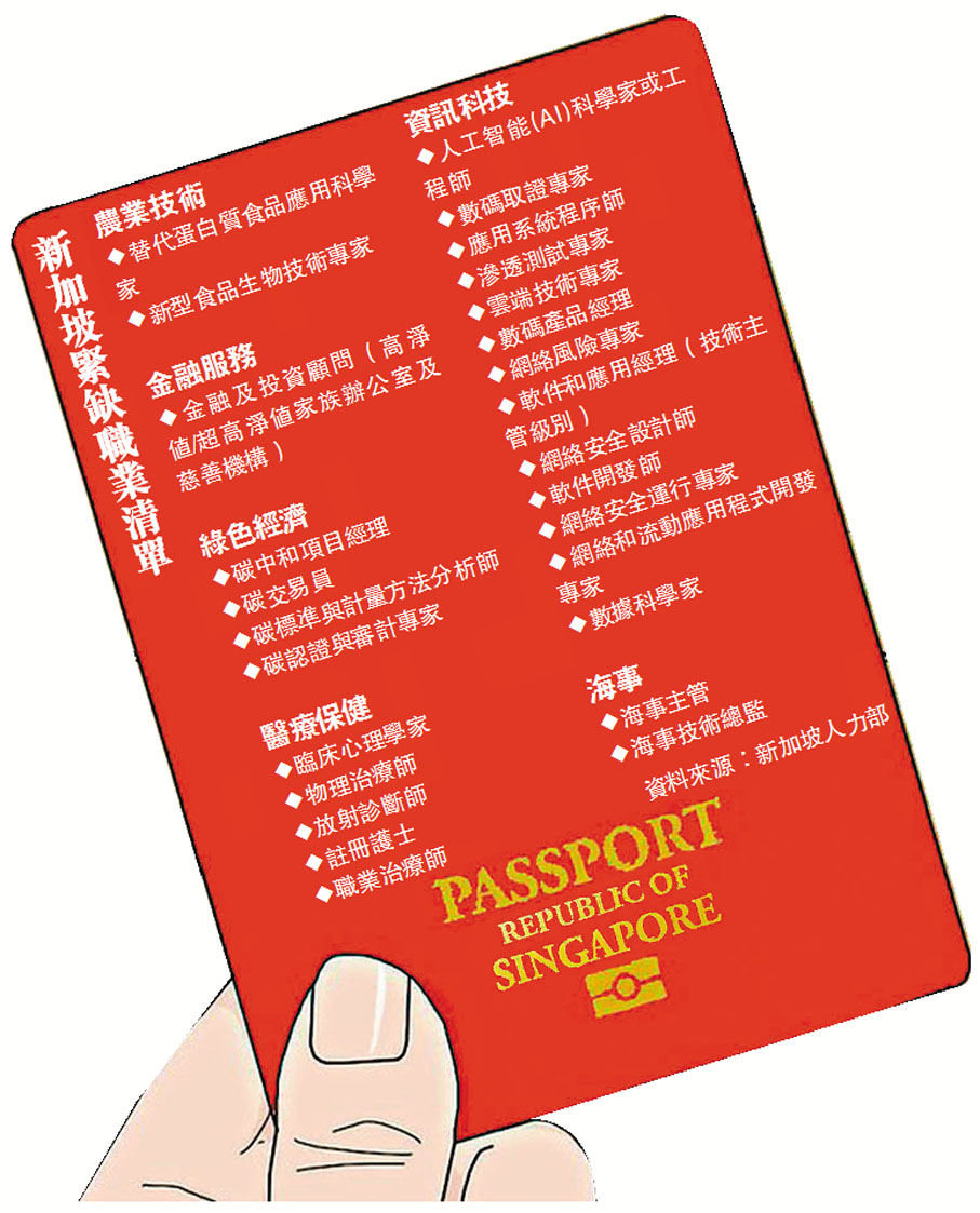 香港文匯報報道,新加坡新修正的外籍人士工作簽證申請規定將於9月生效,當局日前公布「緊缺職業清單」,列入27項職業,申請者可獲得最多20分加分。這些職業包括人工智能(AI)工程師、網絡安全專家,以及研發素食肉類等替代食品的科學家等,體現新加坡致力吸引AI等新興科技人才進駐,積極推動科技進步帶動經濟發展。