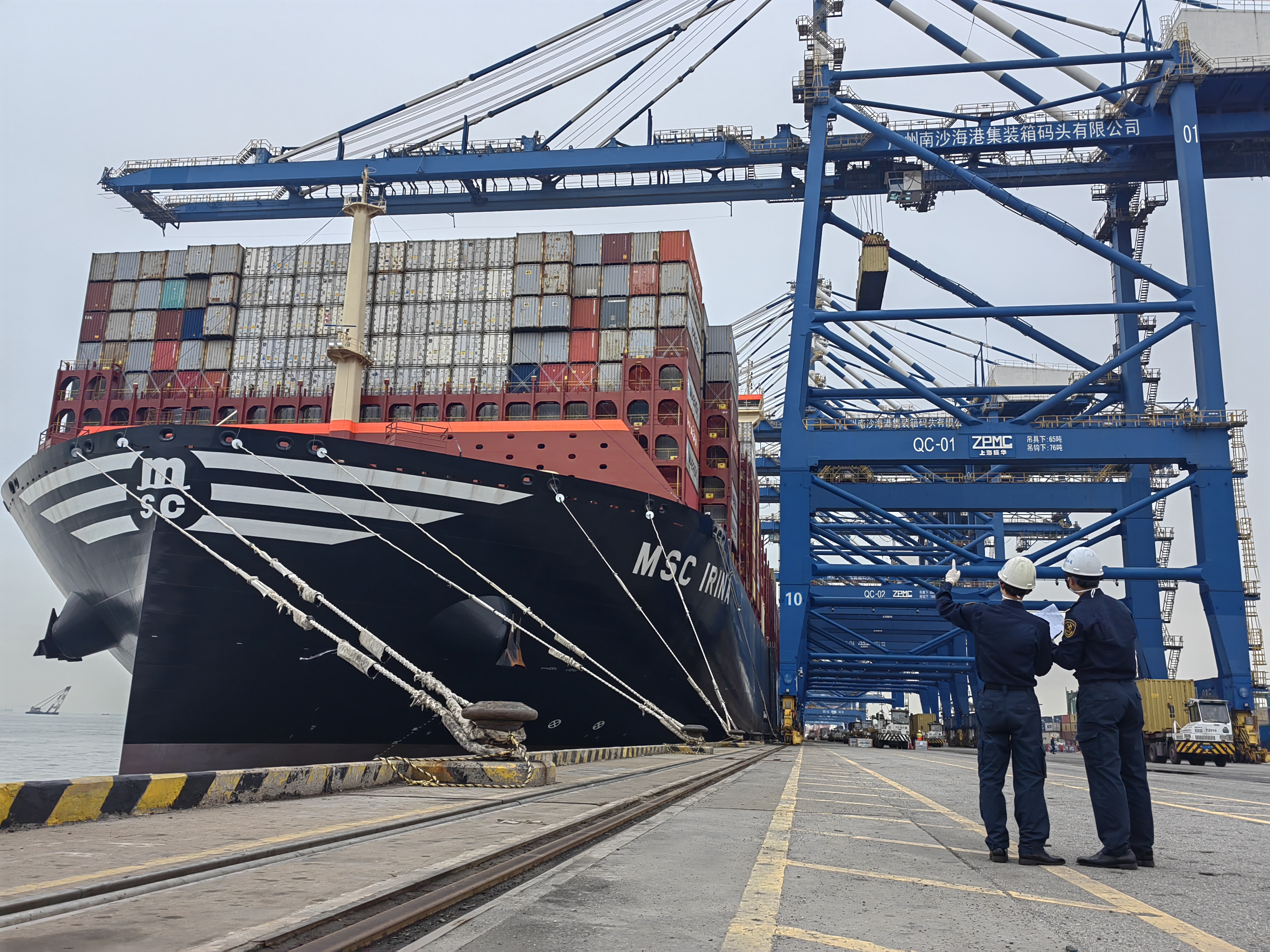 南沙港是華南地區重要的對外經貿樞紐港,周邊物流基礎設施完備,貨源地豐富,物流需求旺盛。為保障「地中海伊琳娜」輪等大型集裝箱貨船順利停靠,廣州海關所屬南沙海關在深入推進智慧海港建設的基礎上,對船舶核放、船用物料起卸添加等業務實行無紙化辦理,開通「綠色通道」,同時做好醫學巡查等相關工作,確保該輪靠港期間衞生安全。