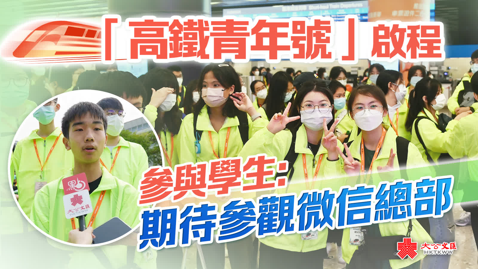 (大公文匯全媒體 記者 李九歌)由青協及龍傳基金舉辦的「高鐵青年號‧創科體驗行2023」出發禮今日(11日)舉行,500位青年將搭乘高鐵前往廣州和佛山,了解高新科技、生態環保發展和歷史文化。香港道教聯合會圓玄學院第一中學學生曾祥傑第一次參加「高鐵青年號」活動,因為對理科有興趣,他希望到內地見識國家科技發展等新技術。