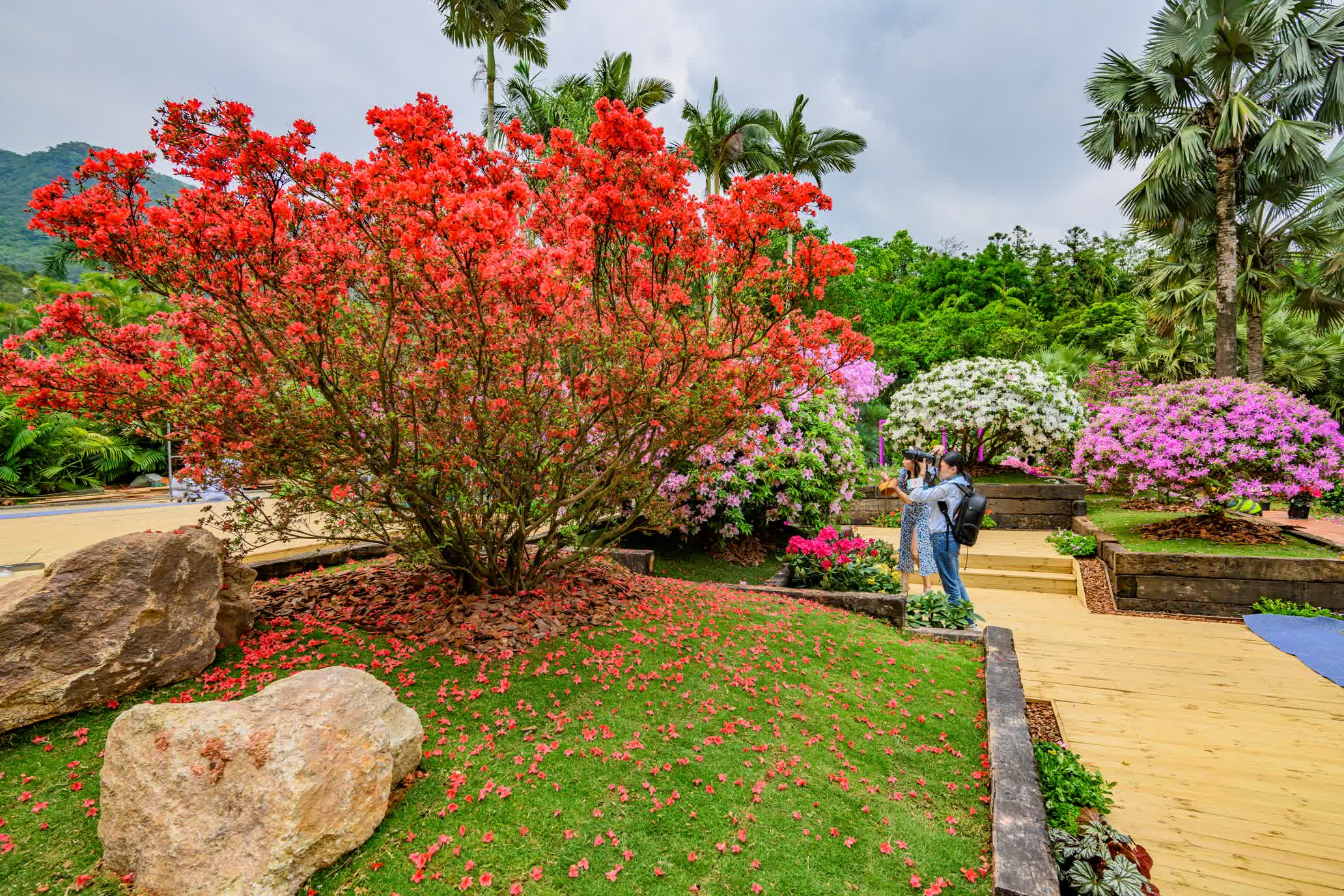 本屆花展的5個新優品種花園分布在「繪夢藍圖」和「築夢舞台」版塊,將展出來自國內外知名園藝企業的1000多個新優花卉品種,包括杜鵑花、球宿根植物、繡球、咖啡、無性系草花和矮牽牛等主題植物。其中,「杜鵑谷」是展示本屆花展主題花的專類花園,展出全系列杜鵑花品種超過35個。色彩艷麗、花團錦簇的杜鵑花與原有地形地貌及周邊植物充分融合,紅如火焰、粉如雲霞、黃若繁星、白若美玉,展示了最熱情、最濃郁的春日美景;更接地氣的是,新優品種花園之一的「氤氳」園引入了深圳本土知名咖啡商家,營造了咖啡文化和園林藝術的融合場景,遊客在此可以認識咖啡、製作咖啡、品鑑咖啡、觀賞咖啡表演,在咖啡的芳香氤氳中多方位體驗咖啡文化。