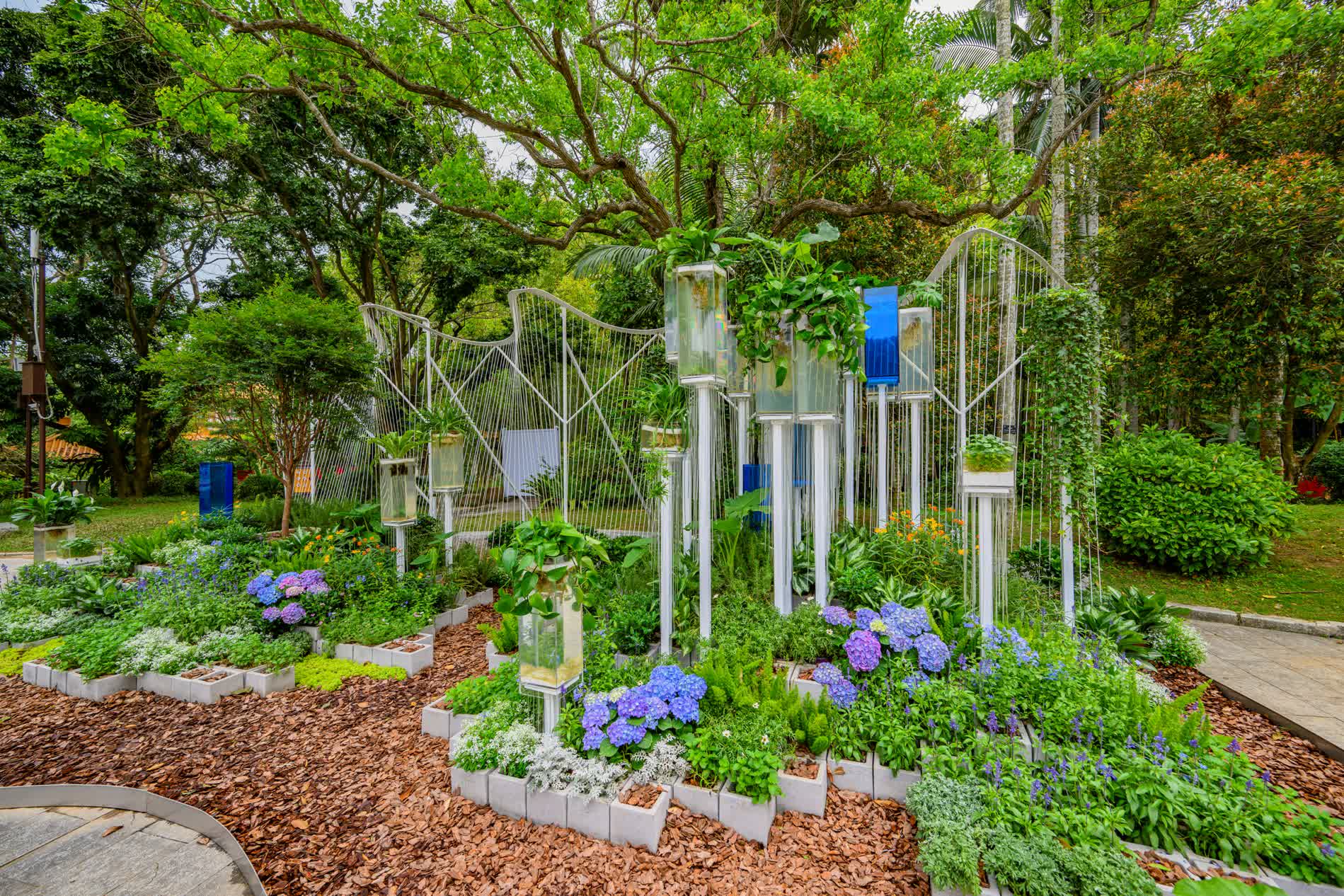 容器花園運用美學原理,採取搭配、襯托、均衡等造景手法將一種或數種觀賞植物栽植於容器中而形成的微型植物景觀,是近年來較流行的微型花園模式之一,具有佔用空間少、投入成本小、施工方便、形式多樣、可重複利用、成效顯著等特點。本屆花展通過競賽方式從137個設計方案中遴選出20個優秀容器花園方案進行作品落地展示,分布在仙湖植物園的不同節點,為多種狹小綠化空間的景觀應用提供參考。