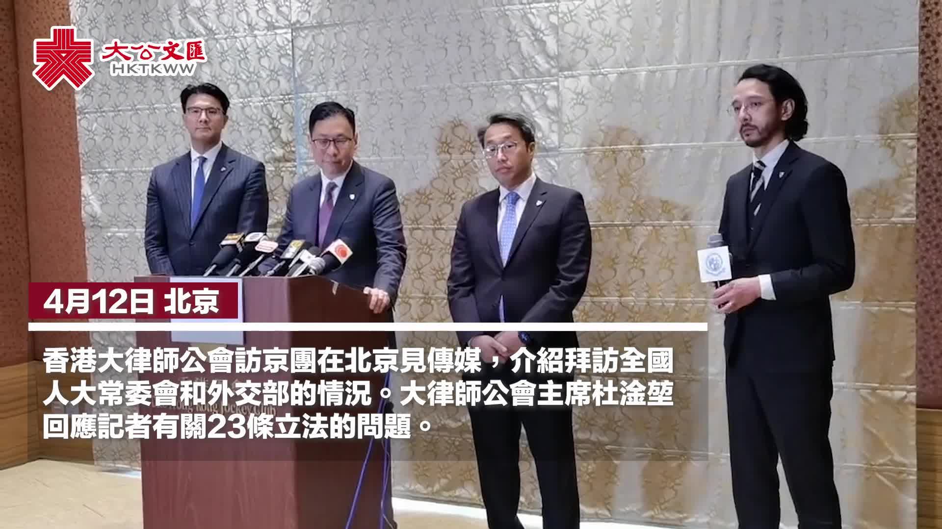 大公文匯全媒體報道,香港大律師公會訪京團今日(12日)在北京見傳媒,介紹拜訪全國人大常委會和外交部的情況。大律師公會主席杜淦堃回應記者有關23條立法的問題。