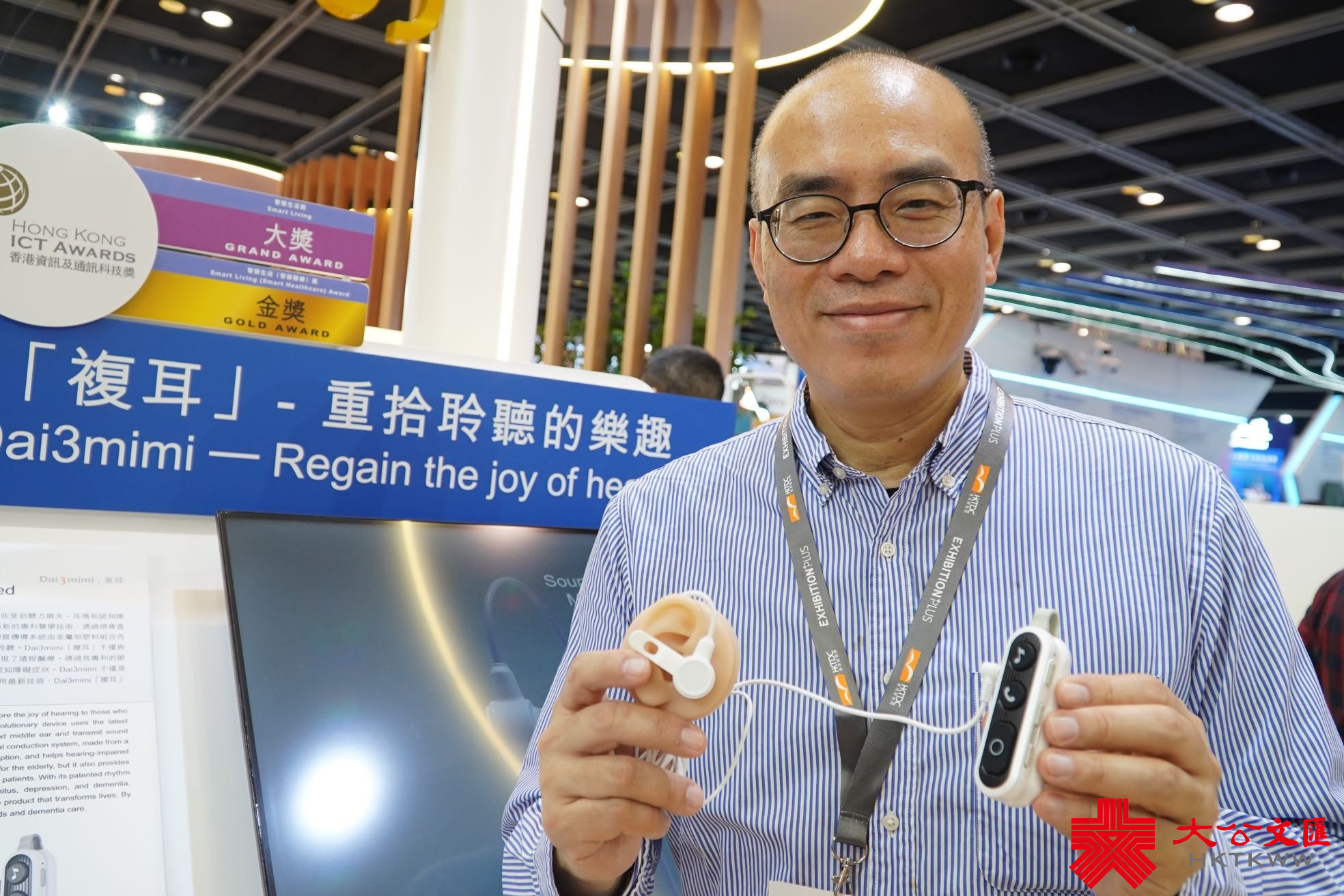 近年樂齡科技掀起熱潮,有本港企業善用「震動產生聲音」這一物理知識,應用金屬和塑膠材料結合的聲學共振特性,直接將聲音通過頭骨傳導到內耳,從而研發介質傳導聲音系統並獲得專利。據複耳科技有限公司創辦人兼首席執行官林旭介紹,產品能有效幫助長者及聽障人士恢復聽力及重拾聆聽的樂趣,亦可以提供移動通信為聽障患者提供遠程溝通,使遠程醫療成為可能的醫療服務。它還能通過其專利的節奏振動機制幫助老年人緩解耳鳴、抑鬱和癡呆等症狀。林旭同大公文匯全媒體記者分享一個動人的故事,指有一日外出餐廳吃飯遇到一名單耳失聰人士,他主動希望試用產品,試用完之後竟然感動到流淚,而今日在展廳亦幫助到一位失聰人士重新聽到聲音。