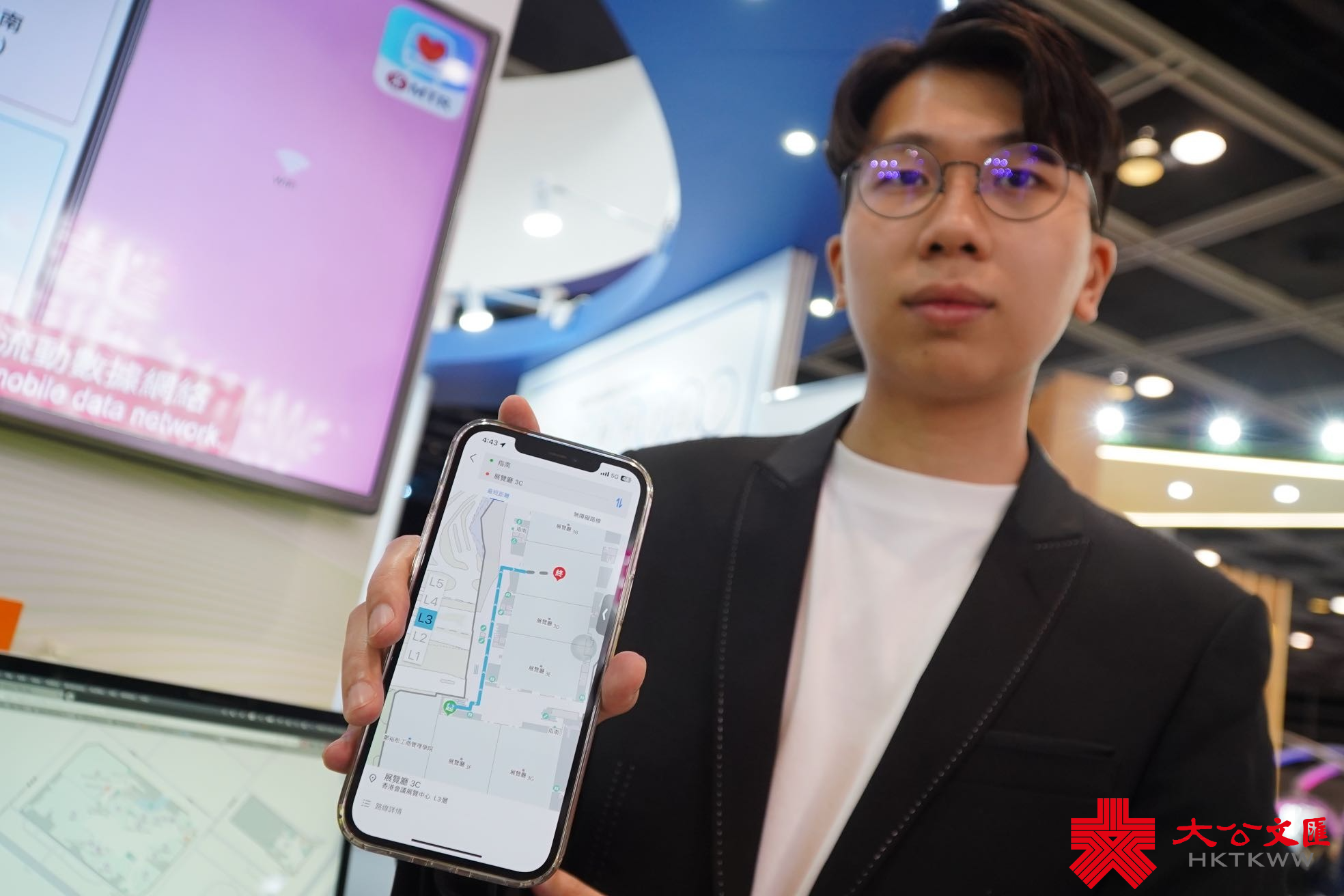 大公文匯全媒體記者在會場內行走時,因為場地面積較大,難免會「迷路」,如果此時可以用導航就好了!不過一般的GPS僅限於戶外地方。於2018年成立的本港企業Mapxus,早前用數年時間進行所有室內地圖、定位、導航以及實時地圖技術的集結工作,並推出室內地圖技術方案產品,無需通過硬件設施定位,用戶僅需連接室內場地Wi-Fi,平台即可獲取定位,通過路線指引,將用戶帶到想去的地方。雖然公司成立僅有短短4、5年時間,但Mapxus現在的目標客戶群包括大型商場、政府場地、大學及醫院等,服務場地約150個,涵蓋範圍廣。此外,Mapxus與政府部門合作,希望以地圖數據配合三維空間數據平台,發揮智慧城市的作用。