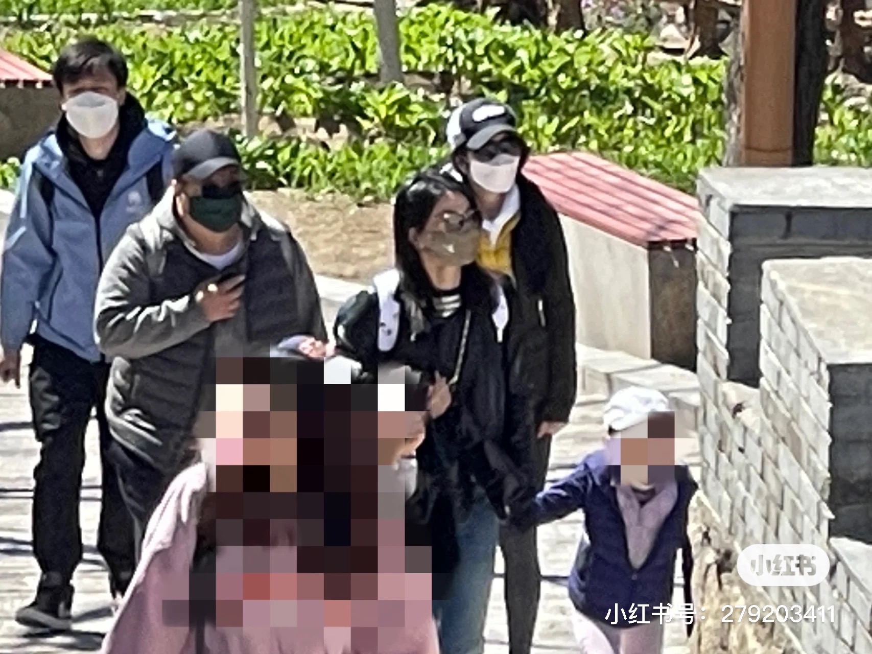 相中所見,郭晶晶身穿條紋衫、黑色外套及牛仔褲,看起來和其他爬長城觀光人士無甚差別,拖着大仔霍中曦一起向前行。霍啟剛則穿藍色外套,抱着戴白帽的囡囡,盡顯父愛。
