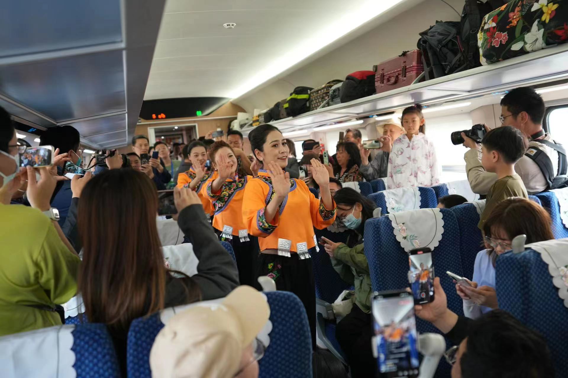 (大公文匯網 記者 丁春麗 濟南報道)今日(4月13日)上午,由中車青島四方股份公司和大連公司聯合製造的「復興號」CR200J型動車組、「瀾滄號」動車組擔當的D887次、D888次首發列車載着中老兩國旅客,分別從中國昆明南站和老撾萬象站雙向對開投入跨境運營,標誌着中老鐵路正式開行國際旅客列車。由此,中國昆明和老撾萬象之間實現動車組直達,朝發夕至。
