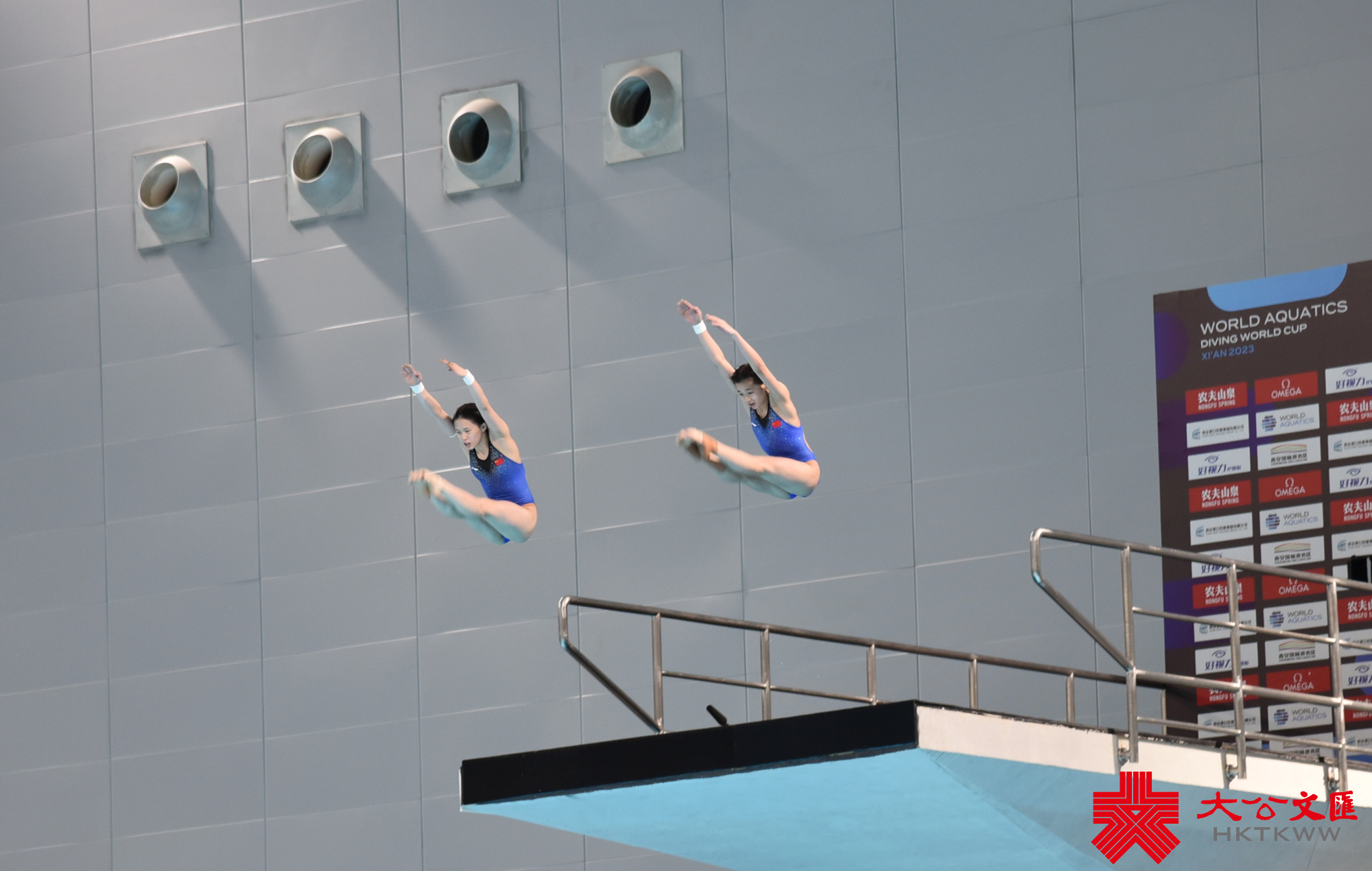 (大公文匯網 記者 李陽波)2023年世界泳聯跳水世界盃首站比賽,14日在陝西西安開賽。在首個比賽日進行的4項決賽中,中國跳水「夢之隊」發揮出色,包攬全部金牌。其中,全紅嬋和陳芋汐聯手拿下女子雙人10米跳台金牌,楊昊、練俊傑組合奪得男子雙人10米台桂冠,昌雅妮搭檔陳藝文,龍道一搭檔王宗源,則分別獲得女子雙人3米跳板和男子雙人3米跳板金牌。