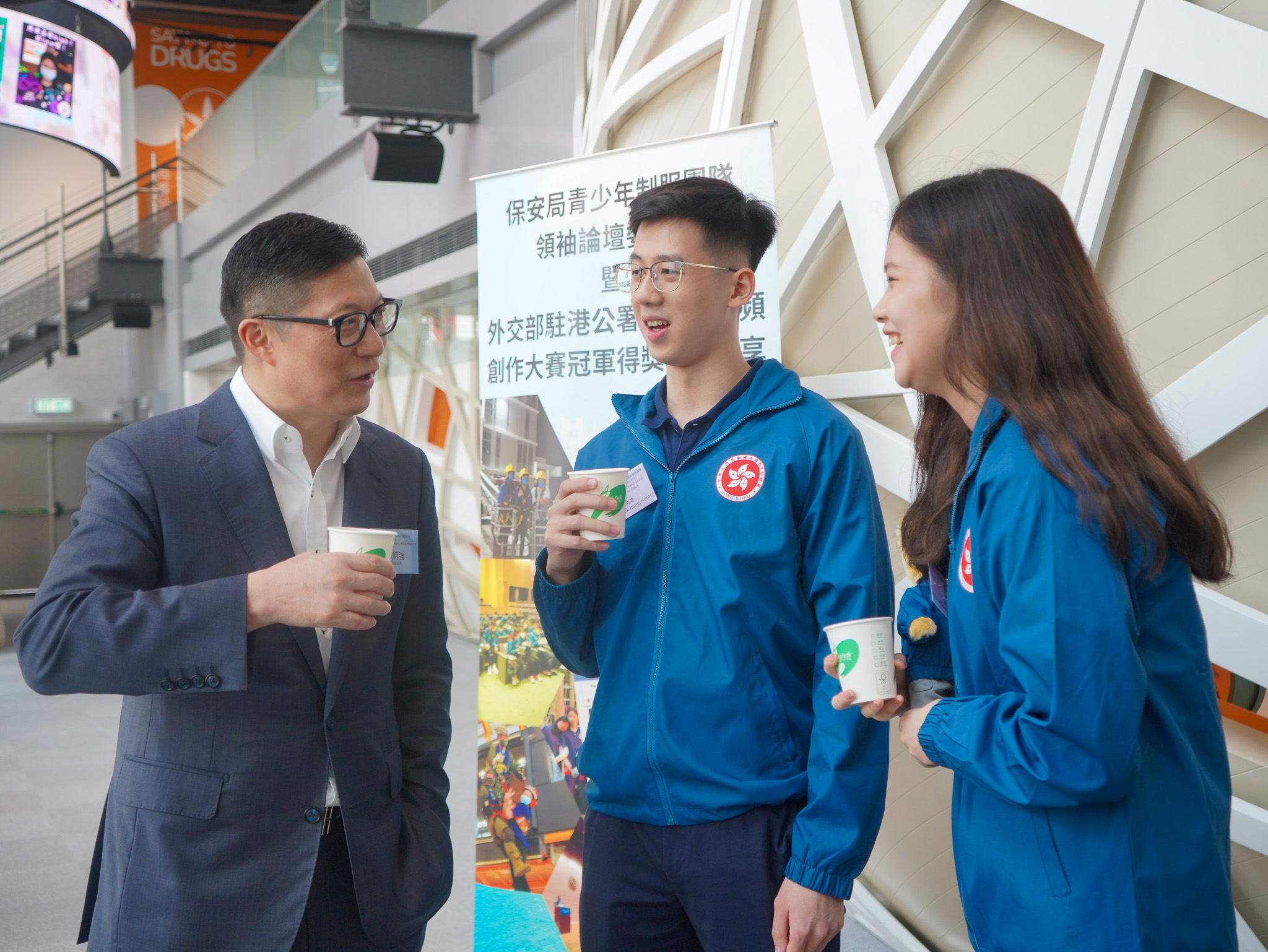 為落實《行政長官2022年施政報告》中提出深化政府部門及職系參與青年工作的措施,保安局去年10月成立「保安局青少年制服團隊領袖論壇」,並為參加者舉辦一系列培訓活動。鄧炳強在儀式上頒發委任狀予五名顧問團成員,包括創會主席楊奮彬、主席鄭翔玲、常任會長陳克勤、會長張華峰和會長關治平。鄧炳強說,顧問團成員是來自不同界別的傑出領袖,感謝他們對領袖論壇的大力支持,以他們的歷練、網絡和服務社會的熱誠,豐富領袖論壇的培訓和青少年成員的體驗,亦為領袖論壇的發展提供寶貴意見,致力為社會培育更多出色的領袖。
