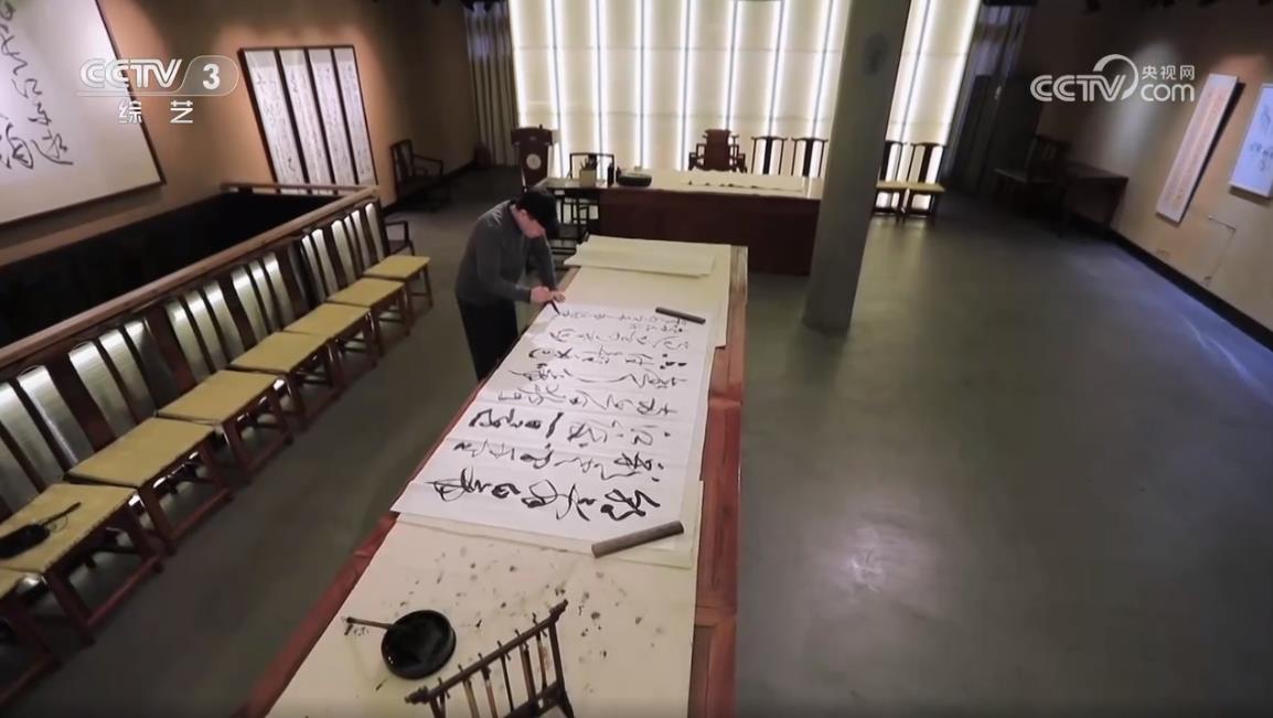 中國書法家協會草書專業委員會副主任、上海市書法家協會主席 丁申陽:以前我就住在這裏的。過去老上海都是亭子間文化,往往是吃過飯以後,把桌上的碗菜搬掉,然後上面再鋪一塊大的板(寫字),寫字搞藝術不在於住房的大小和經濟的發達不發達,還在於自己一顆永恆的心,所謂艱難困苦,玉汝於成。
