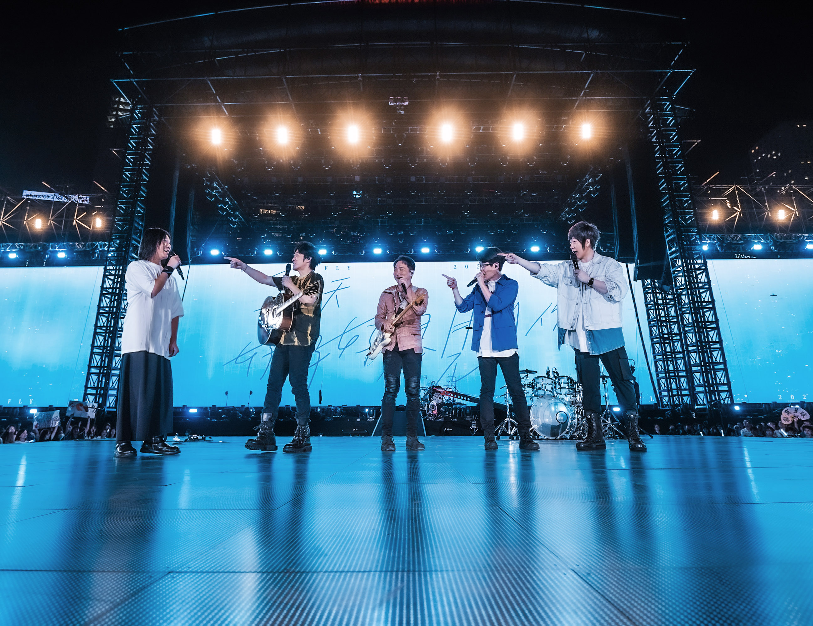 (大公文匯全媒體 特約記者 陳惠芳)「華人第一天團」五月天於4月14、15、16、21、22、23日在香港中環海濱舉行「五月天好好好想見到你演唱會」,昨晚(14日)首場演出,成龍、張學友、劉德華、任賢齊、謝霆鋒等巨星送上花籃祝賀五月天演出成功。