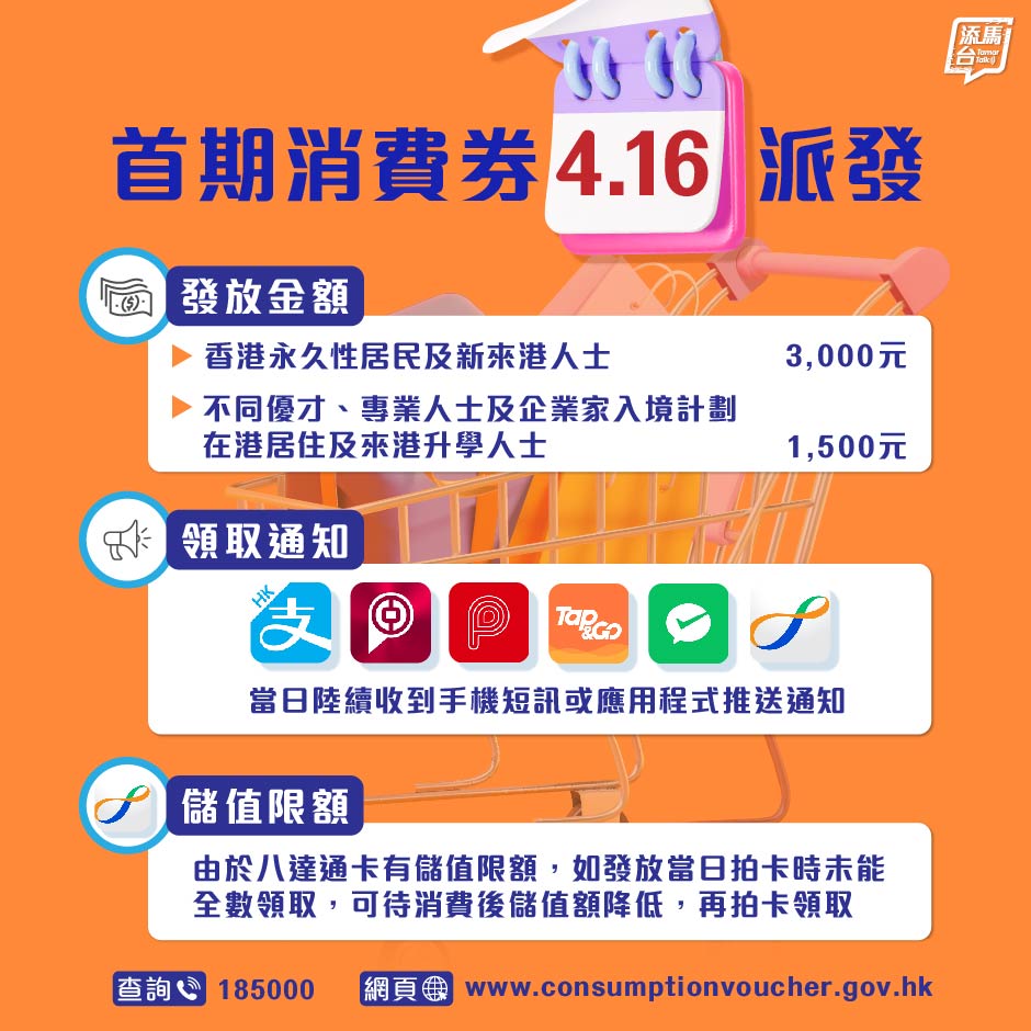 大公文匯全媒體記者報道,全港市民期待的消費券又來了!首期電子消費券今日(16日)派發,香港永久性居民及新來港人士會獲發3000元消費券,而透過不同優才、專業人士及企業家入境計劃在港居住及來港升學的合資格人士,會獲發1500元消費券。