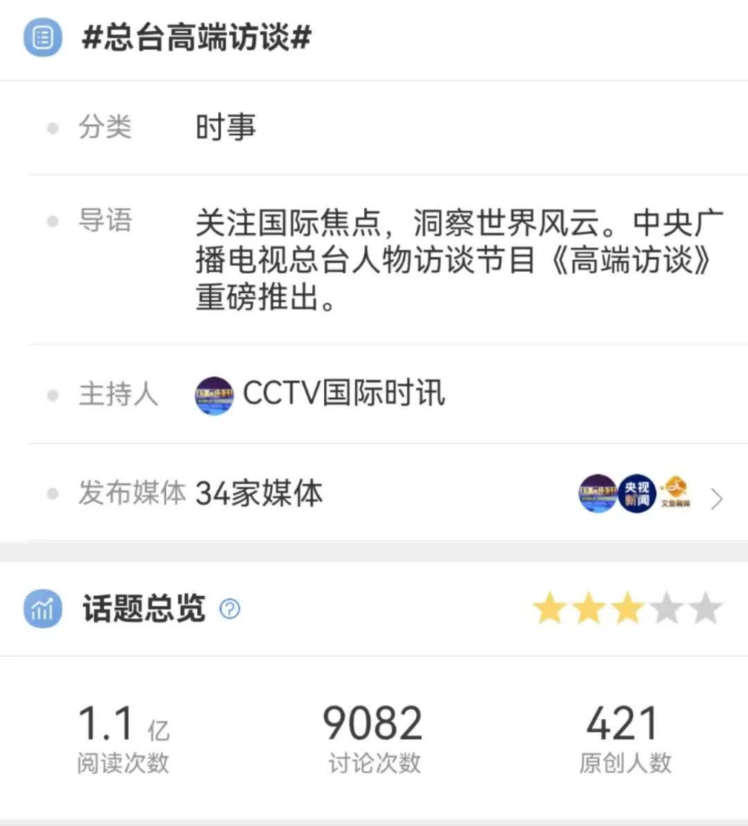 採訪國際政要+周更+30分鐘的時長,總台《高端訪談》如何打造兼具全球視野和中國風範的精品力作,講好新風撲面、真誠親和的文明互鑒故事?這檔訪談欄目,何以「高端」?