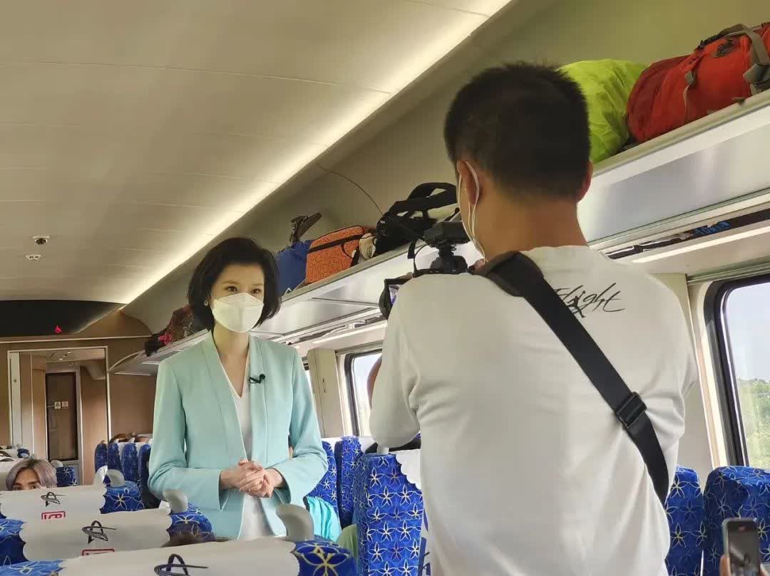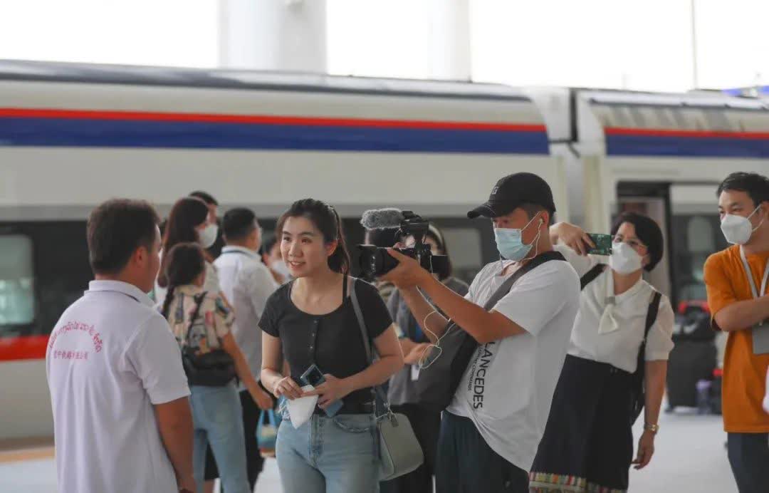 比如,專訪老撾國家主席通倫的節目中,主持人鄒韻在中老鐵路「瀾滄號」動車上採訪當地旅客,車窗外鐵路沿線風光萬千,總台出品的歌曲《坐着火車去老撾》活潑輕盈,各國乘客用最真實的出行體驗,生動展現了跨越山河、聯結友誼的中老鐵路,是共建「一帶一路」取得的實打實的成就。