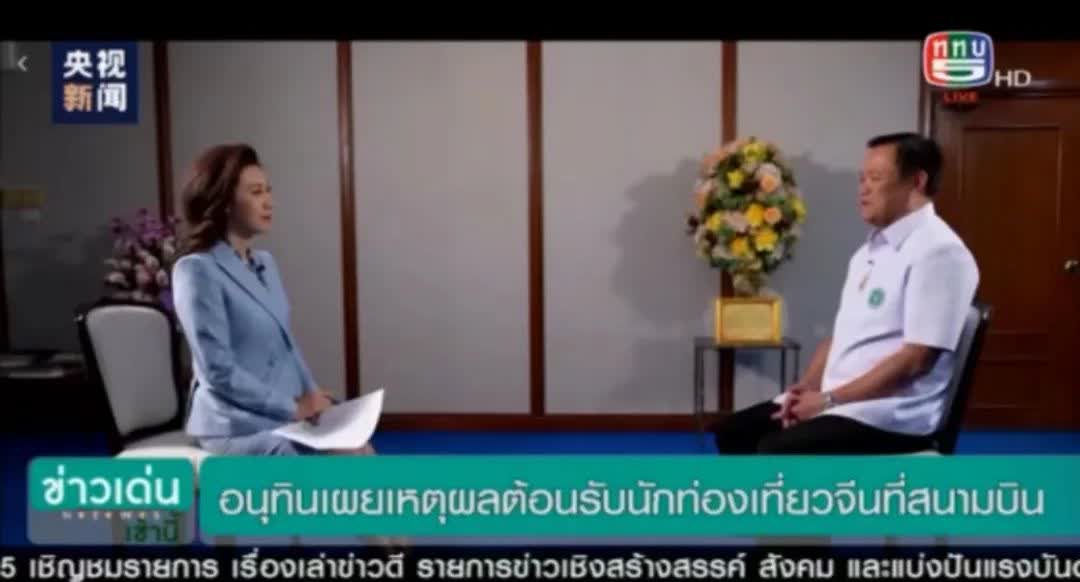 專訪泰國副總理阿努廷時,主持人李曈曈提到,他去機場迎接中國遊客的新聞,在中國社交媒體有4.9億閱讀量。阿努廷感動地說,他當時說的都是肺腑之言,沒想到會有這麼多人看到這條新聞。