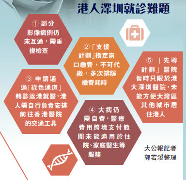 居於深圳的港人張太表示,最怕在深圳患重病,一次住院就要花費數千甚至上萬元,最盼醫療費用跨境支付盡快落地。她說,在深圳公立醫院看專科不用輪候,疫情期間已經習慣了在港大深圳醫院看病。「如果是非緊急情況,又需要看骨科專科,在香港公立醫院可能需要等一年以上。在深圳基本能做到即日看診,或者當周亦能看到醫生。」因此,她希望「支援計劃」能擴大適用範圍到住院,並且還需要進一步破解養老和醫療福利的跨區域流通障礙,加快整合三地醫療資源。