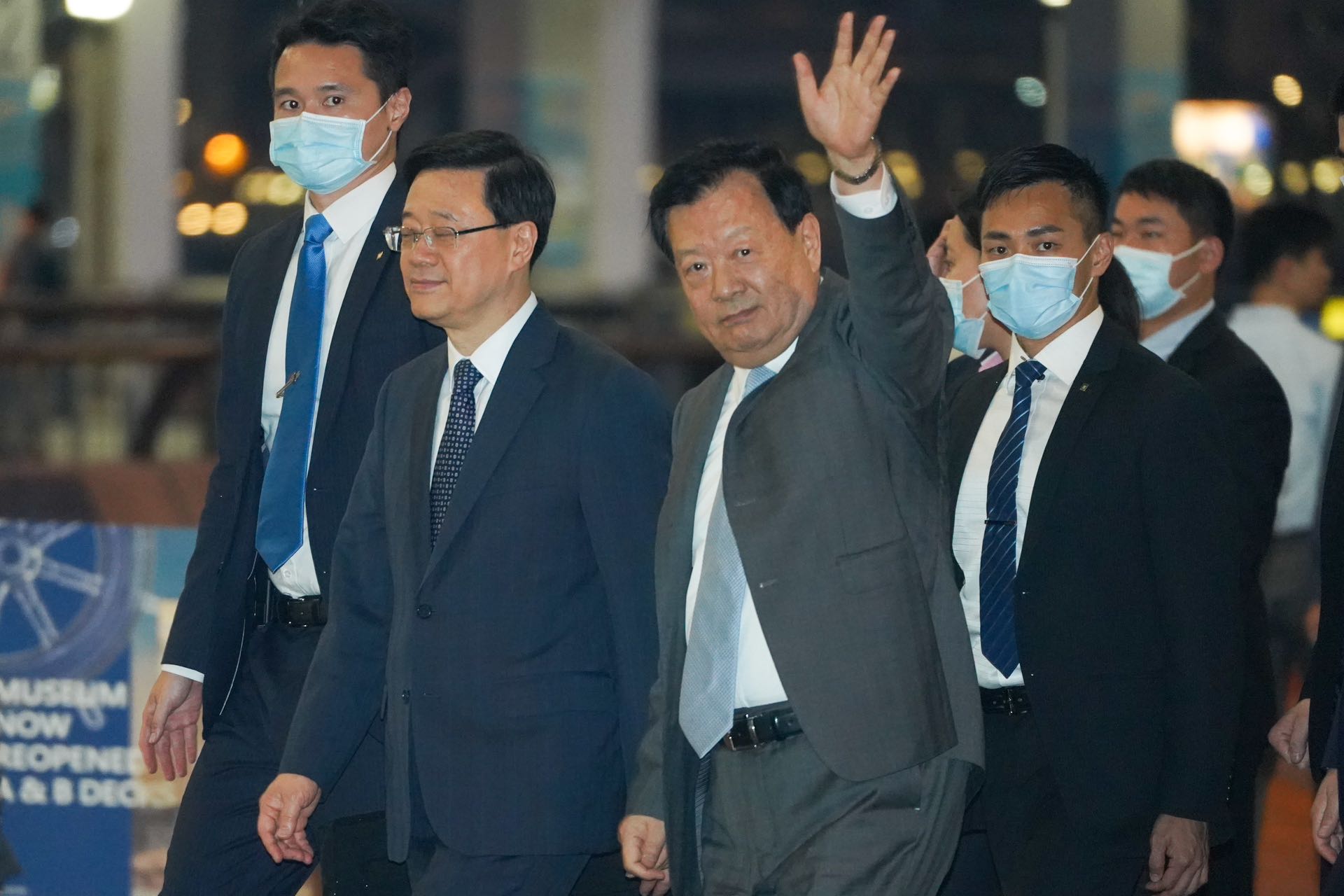 全部考察行程結束後,夏寶龍一行人乘坐專車前往機場。香港中聯辦副主任盧新寧、政務司司長陳國基等送行。