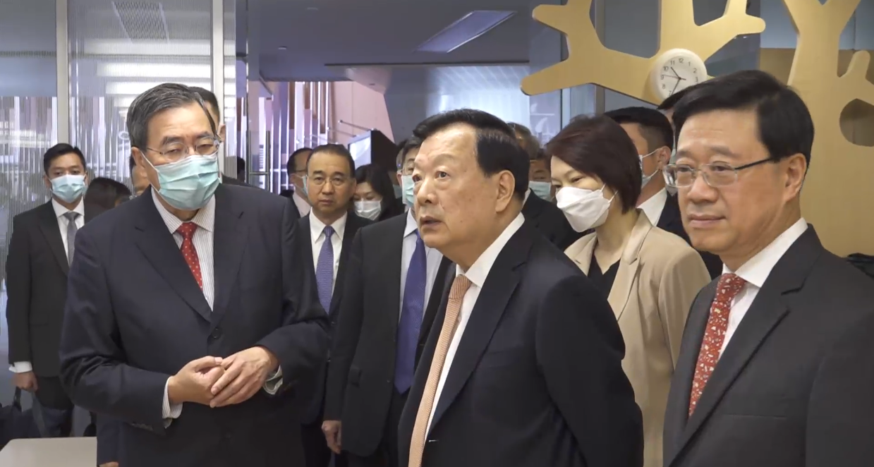 抵港後,夏寶龍首先接見了香港行政長官李家超。李家超向夏寶龍主任來香港考察表達感謝和歡迎,並匯報香港整體情況。