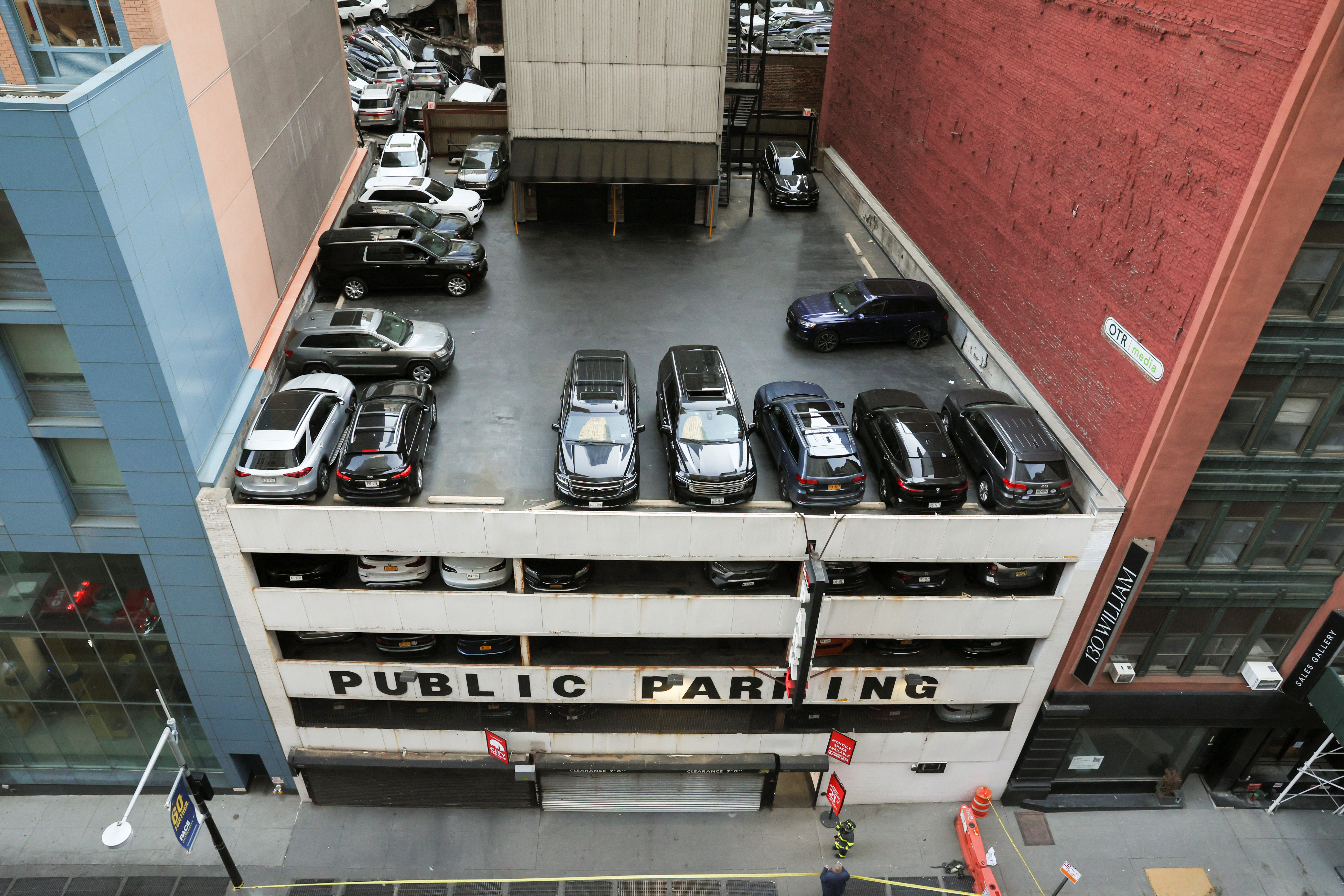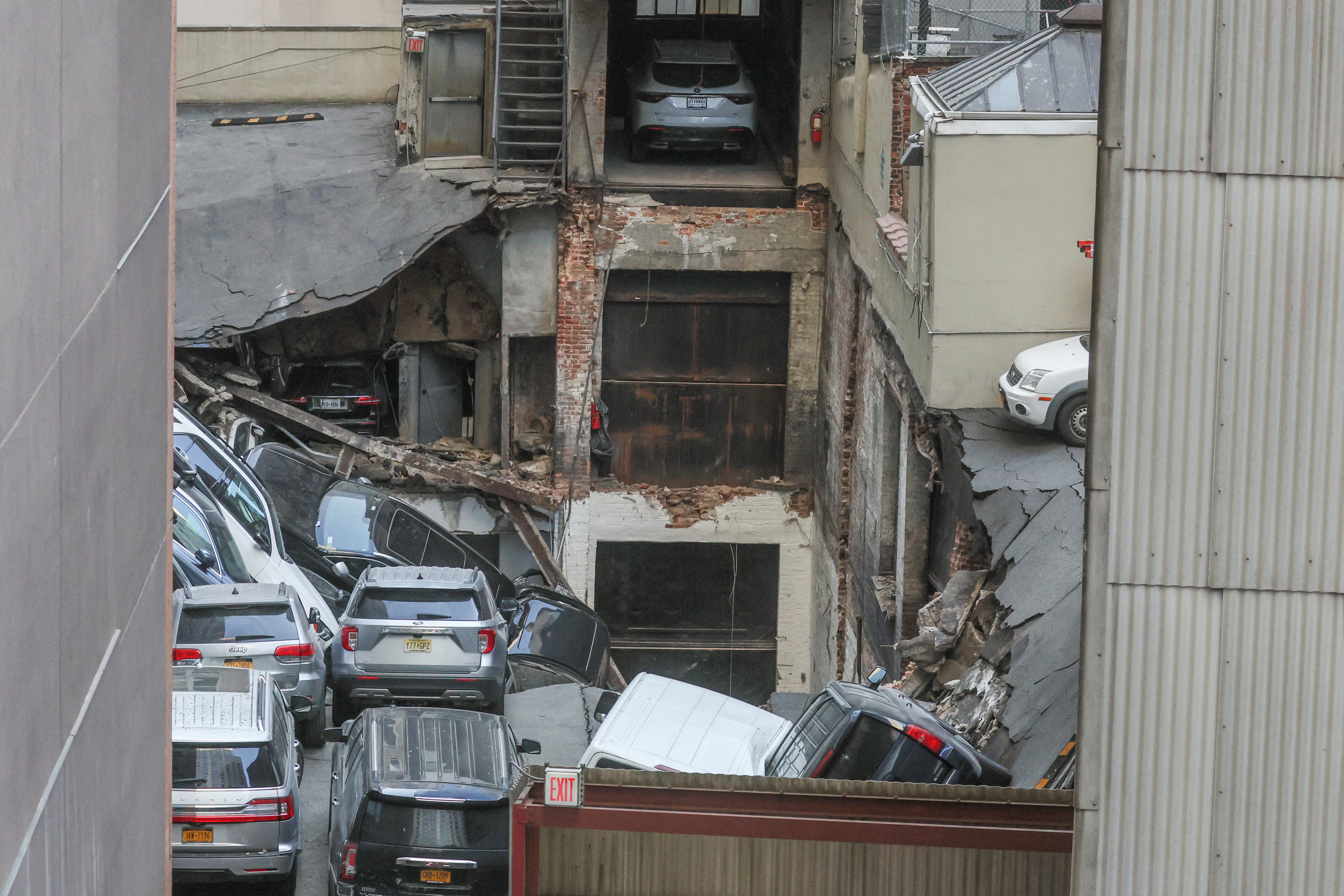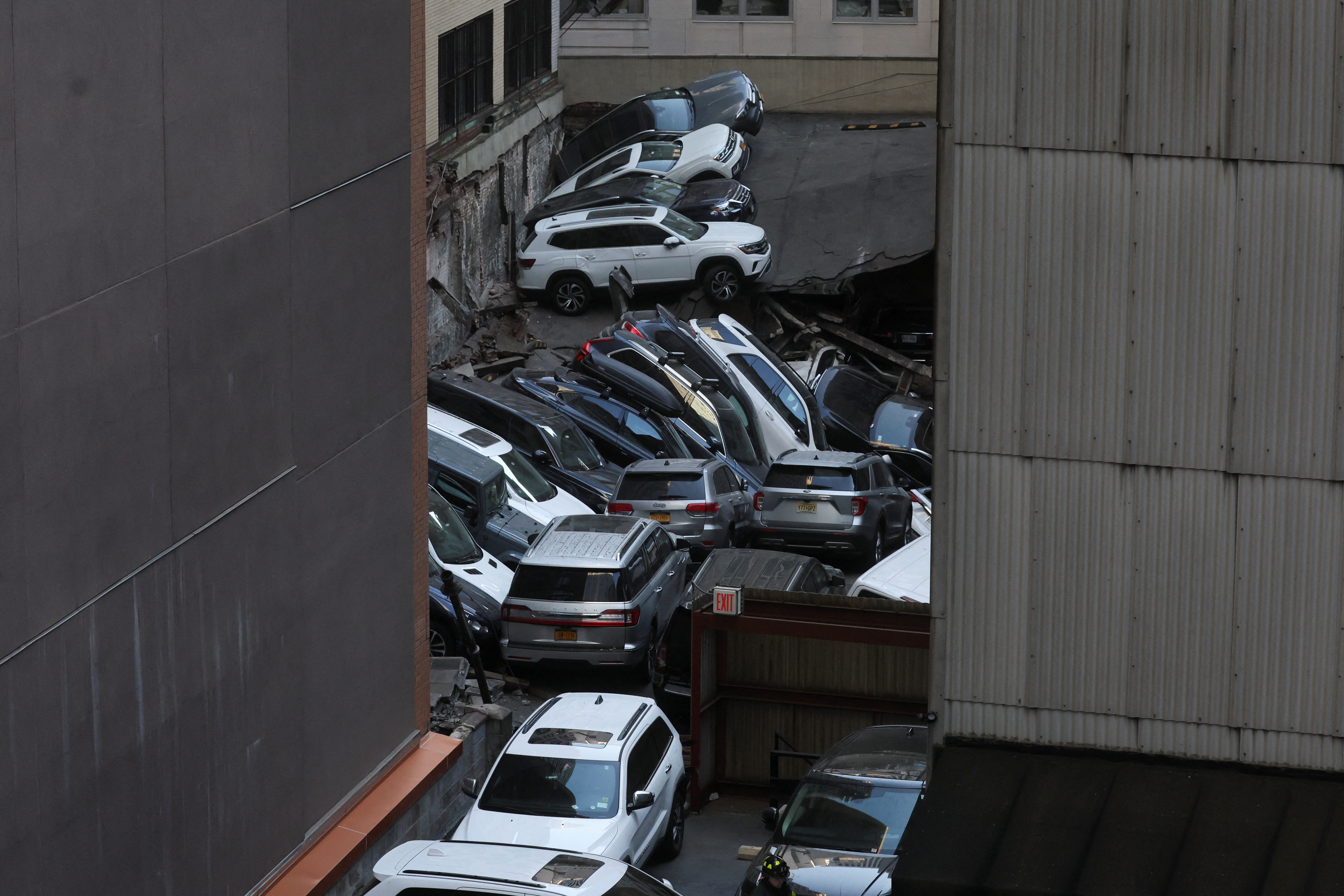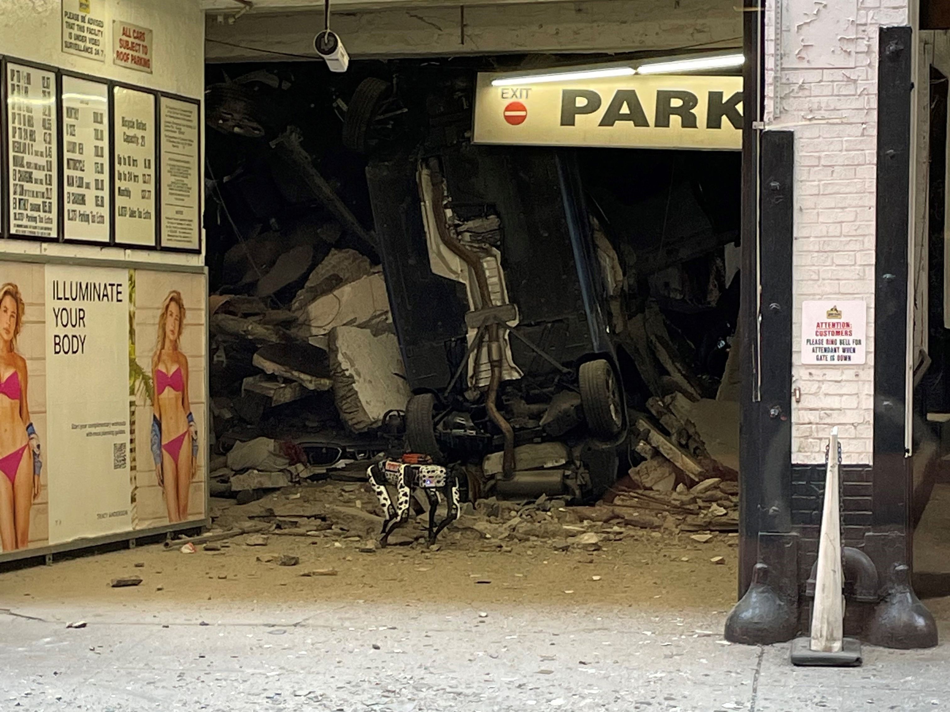 事故現場位於紐約曼哈頓區,停車場2樓於18日下午4時突然崩塌壓垮至1樓,停車場水泥地板破碎,事發時停車場內停滿車輛,消防人員因應建築物結構不穩,恐會進一步倒塌,未能派人進入建築物,要用無人裝置進行搜索。