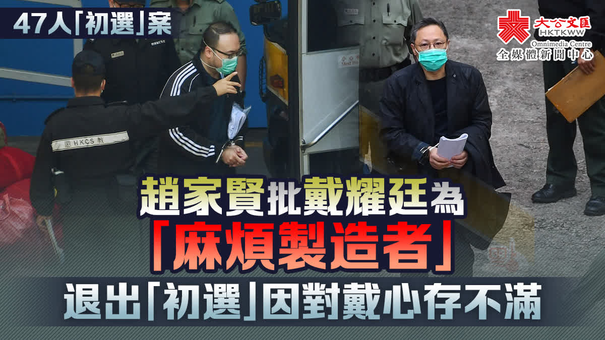 趙家賢自稱,從2016年起與戴耀廷關係「好複雜」,對方作為政治思想家「諗好多嘢出來令到我當時工作好困擾」。法官李運騰追問,是否即是「trouble maker(麻煩製造者)」,趙承認有這種感覺。