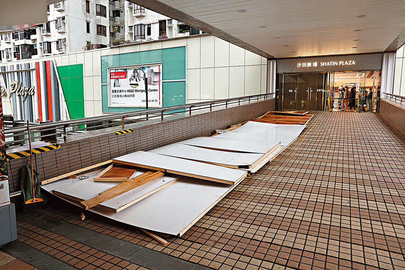上午約11時,沙田正街沙田中心通往沙田廣場的行人天橋上一列約8塊高約兩米,共長約10米的大型木製圍板,在強風下突然倒下,5男1女途人走避不及被壓傷。各人僅受輕傷,其中兩人經救護員包紮後拒絕送院,餘下4人則由救護車送到沙田威爾斯醫院治理。
