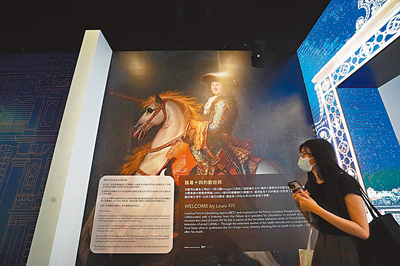 (香港文匯報 記者 吳健怡)今年是法國凡爾賽宮建宮400周年,另外為慶祝法國五月藝術節30周年,香港文化博物館與凡爾賽宮及法國五月藝術節首度合作,昨日起至7月9日舉辦「虛擬凡爾賽宮之旅」展覽,將古蹟與數碼結合,為全球首個凡爾賽宮沉浸式虛擬展覽,透過LED影像呈現凡爾賽宮多個展廳的室內景觀及興建過程,更模擬法國波旁王朝國王路易十四的聲音,讓觀眾透過多媒體及互動裝置探索凡爾賽宮及其珍品,享受沉浸式遊覽法國的虛擬體驗,同時認識凡爾賽宮的歷史。