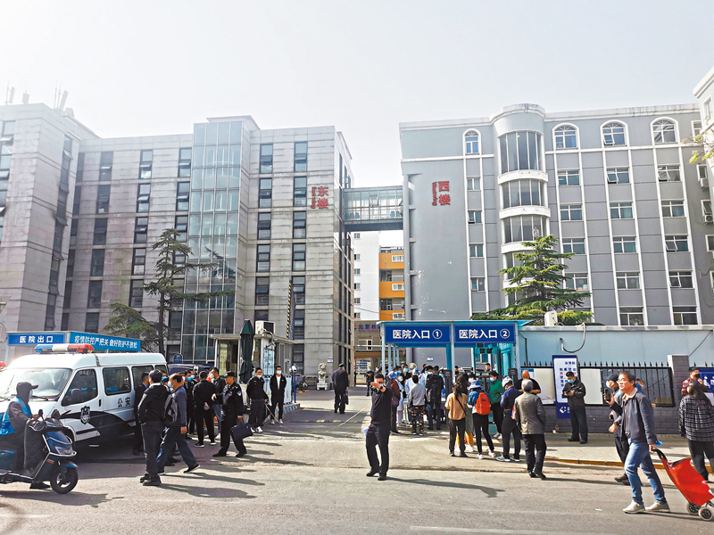 19日早上,香港文匯報記者來到事故現場看到,北京長峰醫院已經實行封閉管理,有醫院患者家屬從院內走出,醫院西樓後面不時有醫護人員在院區走動,院內的醫務人員可以隔着院牆收快遞。現場有不少公安人員戒備。