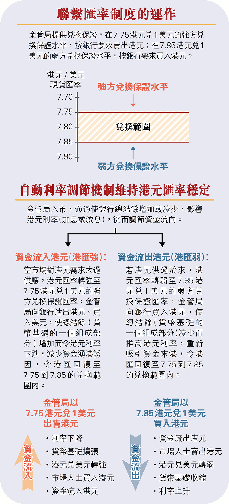雖然金管局近月頻頻入市接錢,惟按照聯匯制度的防禦機制,當外匯基金賬上的銀行體系總結餘減至某水平,意味貨幣基礎收縮下,就會推高港元拆息,吸引資金回流港元,屆時港匯將保持穩定。其中最經典例子,是1997年港元受狙擊下,隔夜拆息曾升至接近300厘。