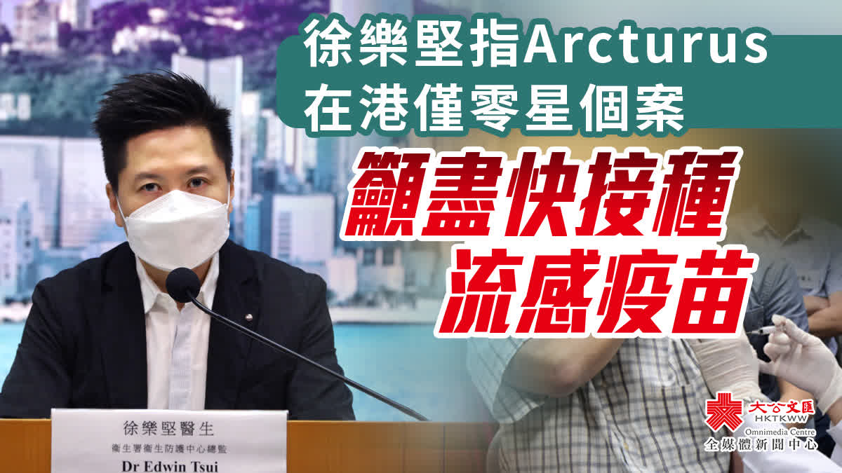 新冠疫情方面,徐樂堅指,目前新出現的變種病毒株Arcturus(大角星、XBB.1.16)於本港只有零星個案,並非主流病毒,印度較多兒童患者出現結膜炎,但數據不算多,現時本港主流病毒株仍是BA.2及BA.5,患者普遍無徵狀或輕微徵狀。他又指,雖然新冠感染個案有上升趨勢,但現時新冠就如流感一樣,是風土病的情況,而重症和死亡數字並無明顯上升,當局將會繼續密切監察情況。