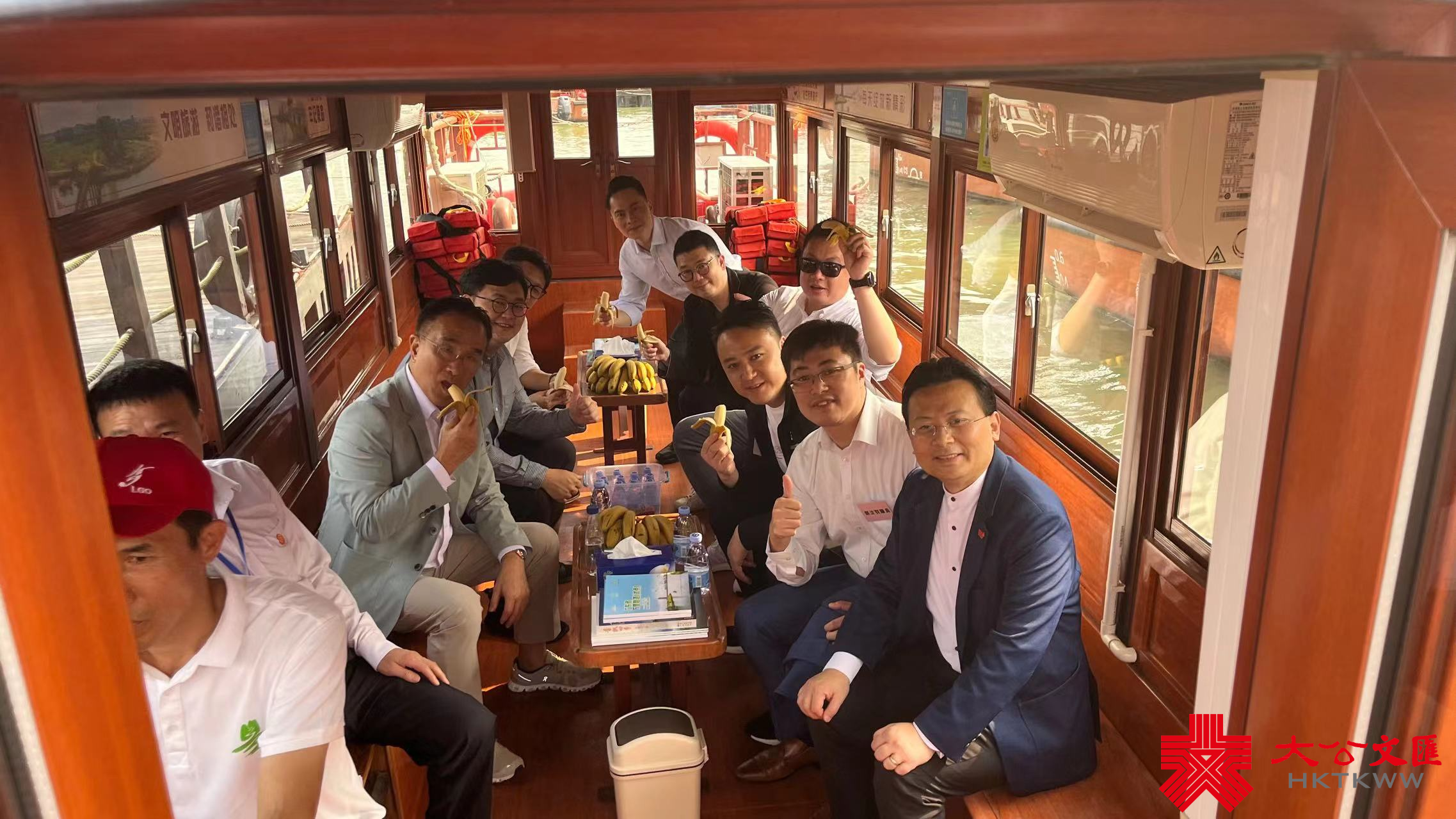 梁君彥一行先到聽取華陽湖國家濕地公園,工作人員介紹濕地公園概況,不少議員登船品嘗當地種植歷史悠久的特產香蕉。
