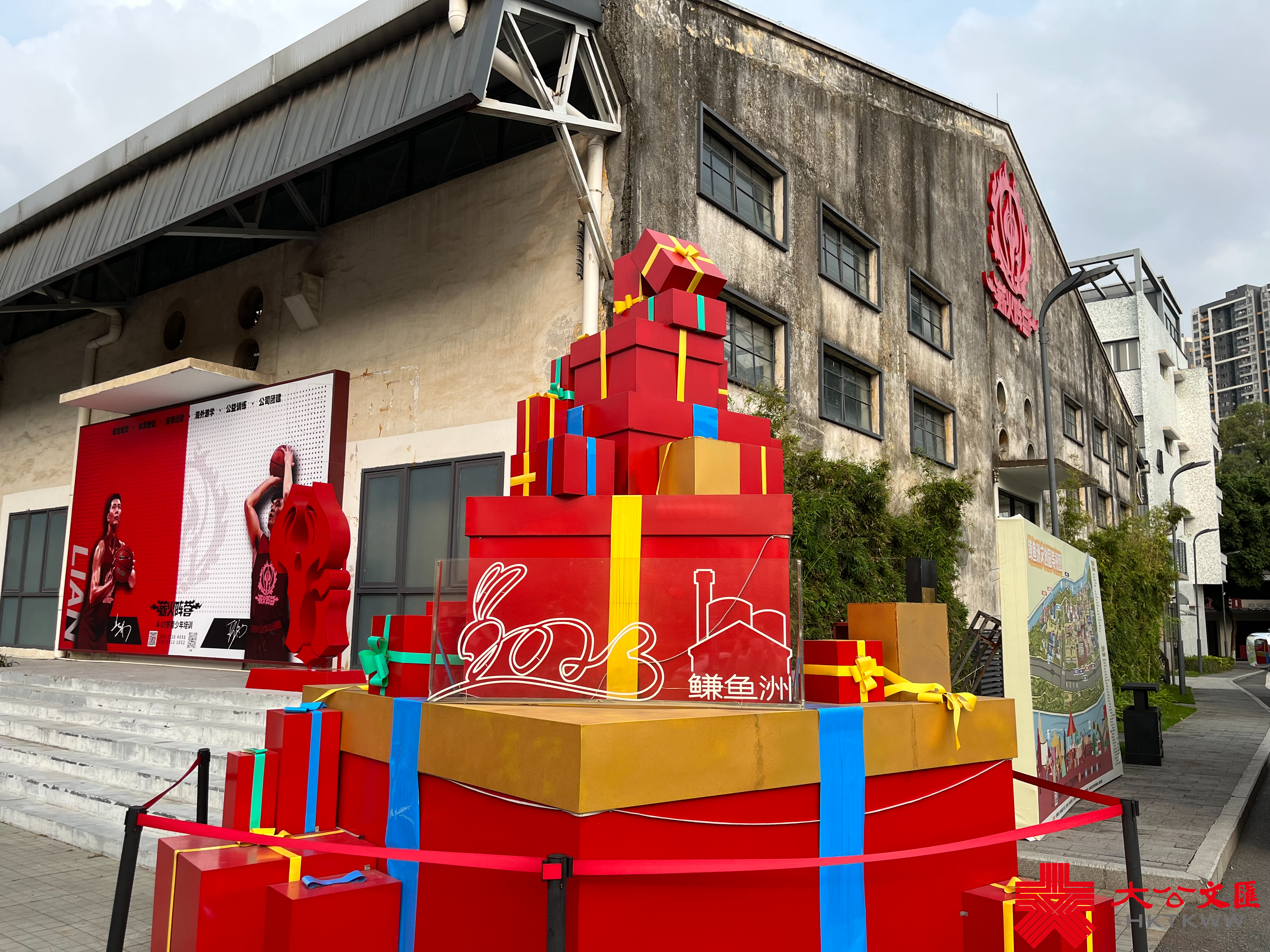 一行人其後到鰜魚洲文創園參觀。鰜魚洲文創園前身是粮油企业和外贸企业聚集的工業園,城市變遷後逐漸沉寂,其後經過重建活化後成為文創產業園區,亦是東莞新晉的網紅打卡點。