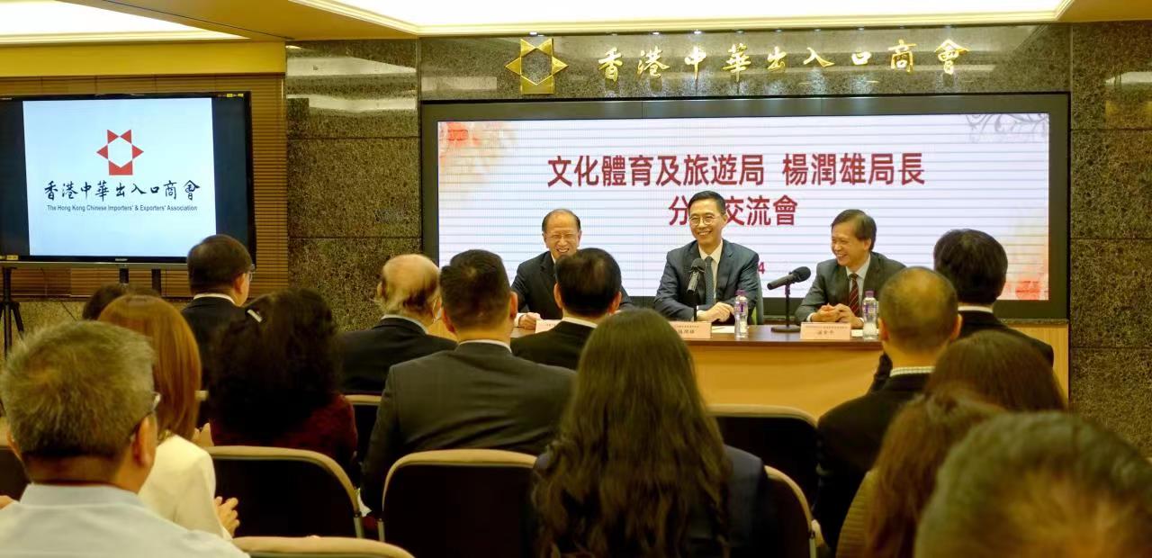 大公文匯全媒體報道,香港中華出入口商會日前邀請文化體育及旅遊局局長楊潤雄擔任分享交流會嘉賓,就局方目前正在推動的主要工作及相關政策作分享,並與出席的會董及會員作交流。
