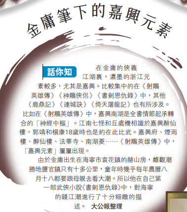 方佳麗告訴記者,對於嘉興學院的學生來說,金庸圖書館是全院師生引以為傲的標誌。「畢竟這是內地唯一一個以金庸先生名字命名的圖書館,親朋好友來學校參觀的時候,都會特意帶他們去那裏轉轉。」方佳麗還分享了一件與圖書館有關的軼事。「金庸圖書館旁邊有條小河,當時圖書館建成後,時任嘉興學院金庸研究所所長的方伯榮教授讓同學們給這條河取個名字。最後還是結合河邊楊柳飄飄的環境以及《射鵰英雄傳》裏邱處機和江南七怪相約嘉興煙雨樓比武等元素,定名為『柳煙河』。」