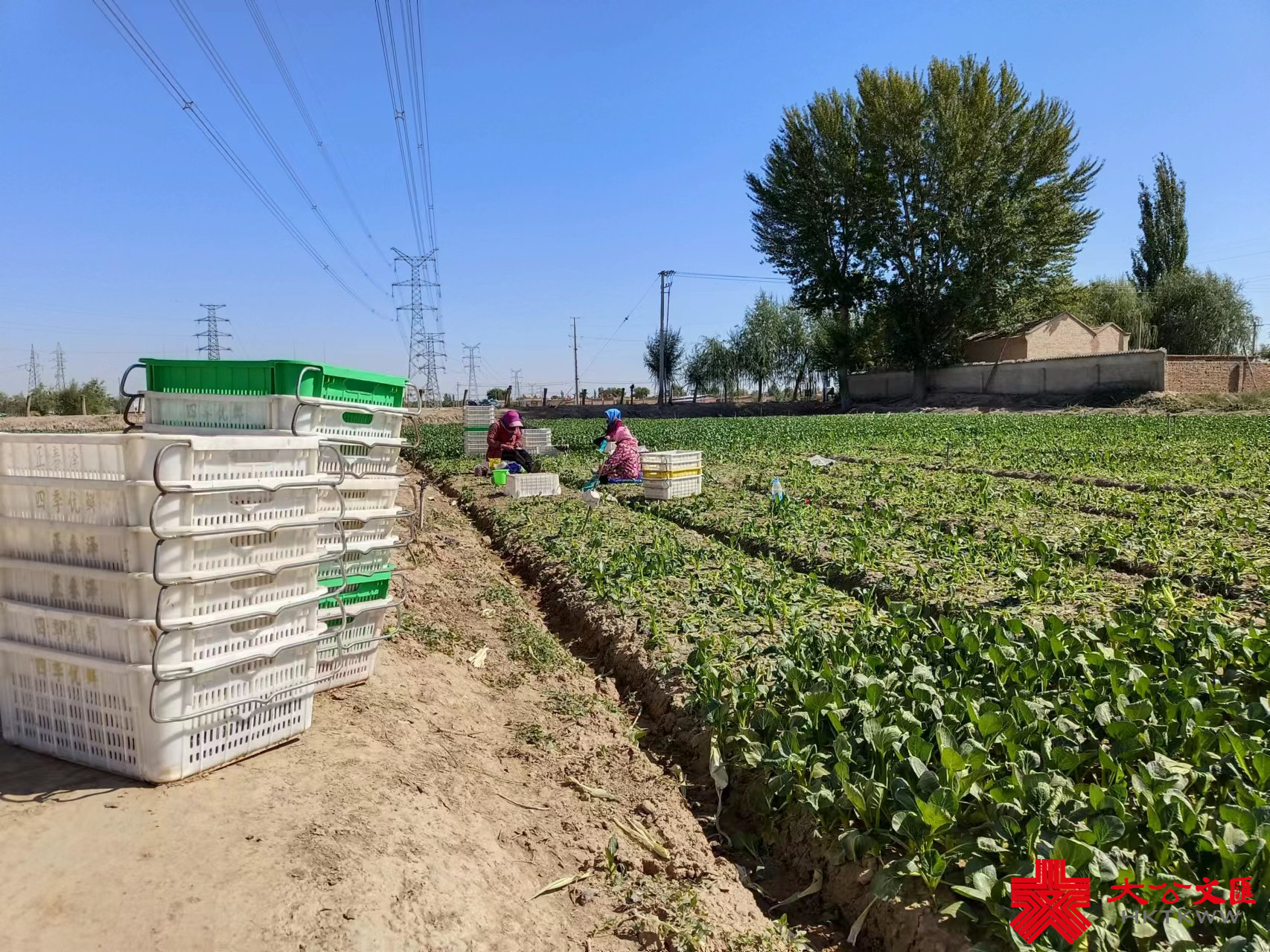 (大公文匯網 記者 王尚勇)4月26日,在寧夏賀蘭縣立崗鎮銀星村供港蔬菜種植基地裏,一片片綠油油的菜心長勢喜人,工人們穿梭田間,忙着採摘、裝筐、過秤、搬運。