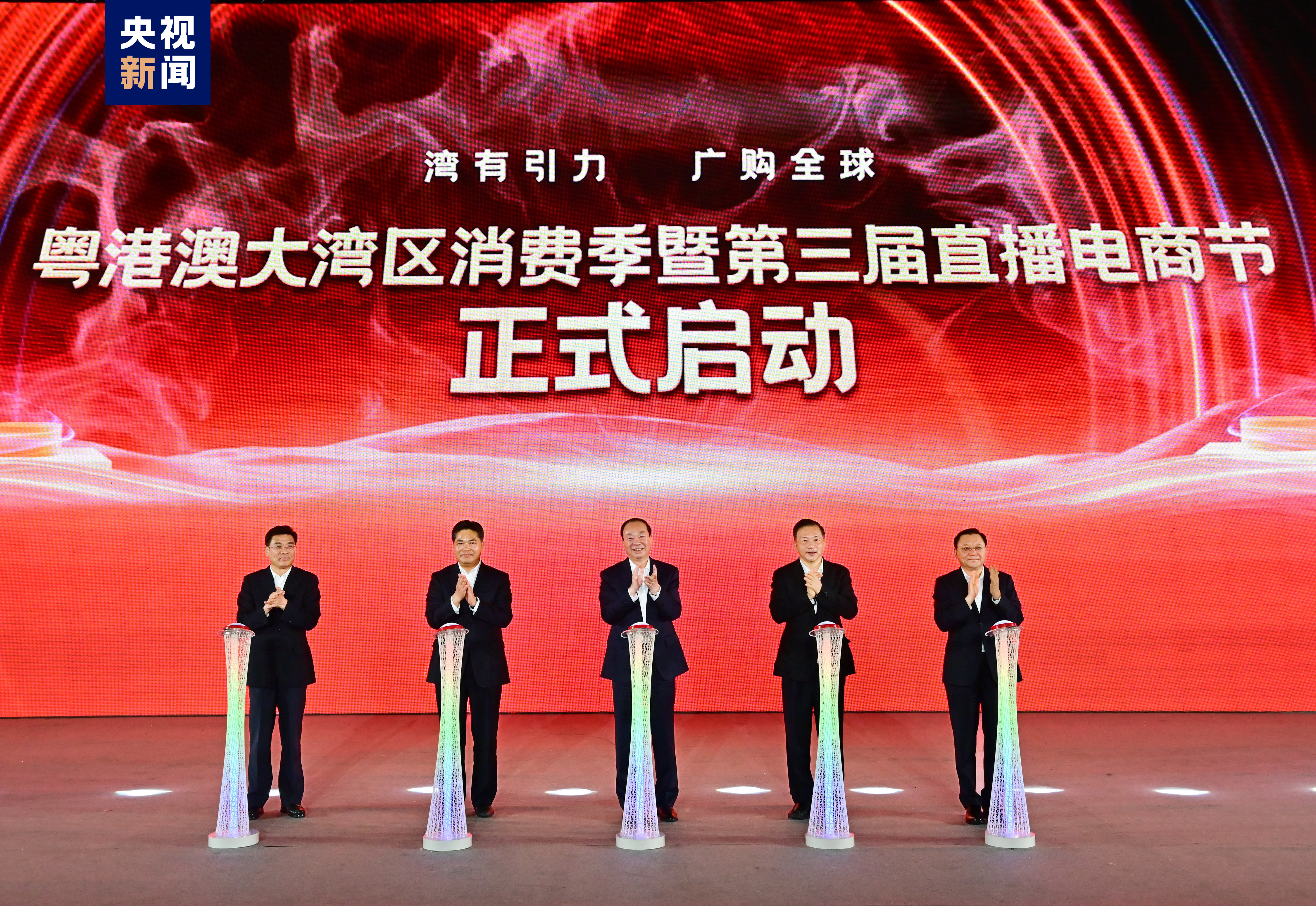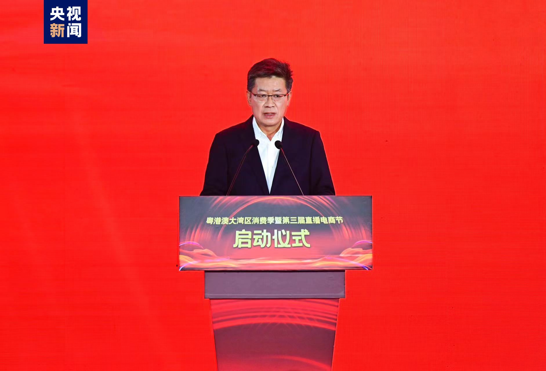 廣東省委書記黃坤明出席活動,並與中宣部副部長、中央廣播電視總台台長慎海雄,廣東省委副書記、省長王偉中,廣東省政協主席、廣東省委常委、廣州市委書記林克慶,商務部黨組成員、副部長盛秋平共同啟動「粵港澳大灣區消費季暨第三屆直播電商節」。
