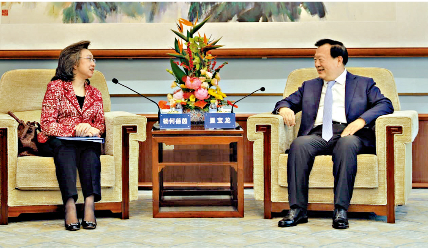 大公報記者龔學鳴報道:4月26日上午,國務院港澳事務辦公室主任夏寶龍在北京會見香港特別行政區政府公務員事務局局長楊何蓓茵一行。夏寶龍對特區政府公務員的工作予以充分肯定,勉勵和殷切期望公務員繼續全力支持行政長官施政。楊何蓓茵向夏寶龍匯報特區政府公務員事務的整體最新情況,表示公務員是特區政府的骨幹,當局會優化公務員管理和加強培訓,落實「愛國者治港」原則,全面準確、堅定不移貫徹「一國兩制」方針。