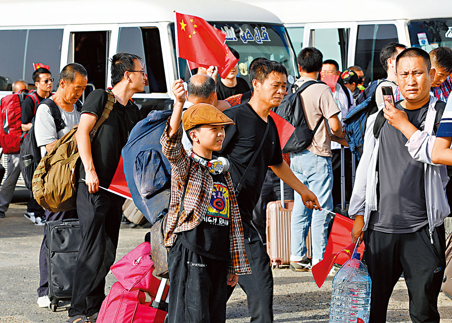 當地時間27日10時許(北京時間27日15時許),中國首批從蘇丹撤離的678人隨軍艦安全抵達沙特吉達港。「習主席派軍艦接大家回家」,從蘇丹撤離的張山(化名)告訴香港文匯報記者,他們進入蘇丹港登艦處首先就看到了祖國的軍艦,還有軍艦上這條醒目的標語。「登上軍艦,聽着廣播通知說,軍艦就是『移動的國土』,登艦即安全回家。那一刻是真的放心了,感覺就是在自己的國土之上。」張山說,自己都感覺底氣十足。