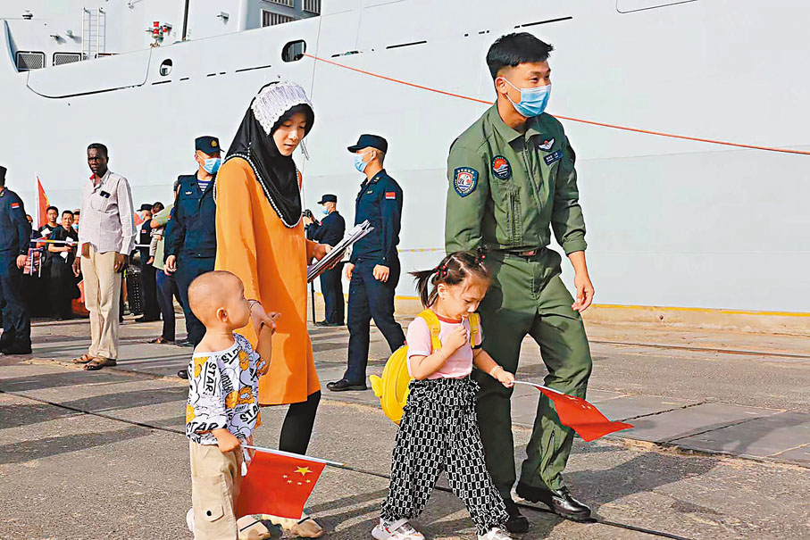 (香港文匯報 記者 馬靜、文森、丁春麗)「看到中國人民解放軍,我哭了!我太感動了!」當地時間4月26日,中國海軍艦艇緊急赴蘇丹撤離中國在蘇丹人員。在中國海軍的保駕護航下,中國在蘇丹同胞踏上回家路。登艦過程中,一名中國同胞淚流滿面,難掩激動。當地時間27日10時許(北京時間27日15時許),首批撤離的678人隨艦安全抵達沙特吉達港。「有網友說,『有一種安全叫祖國接你回家』。這就是祖國,你永遠可以信任她」。外交部領事司司長吳璽接受採訪時的這句話,道出了同胞們的心聲。