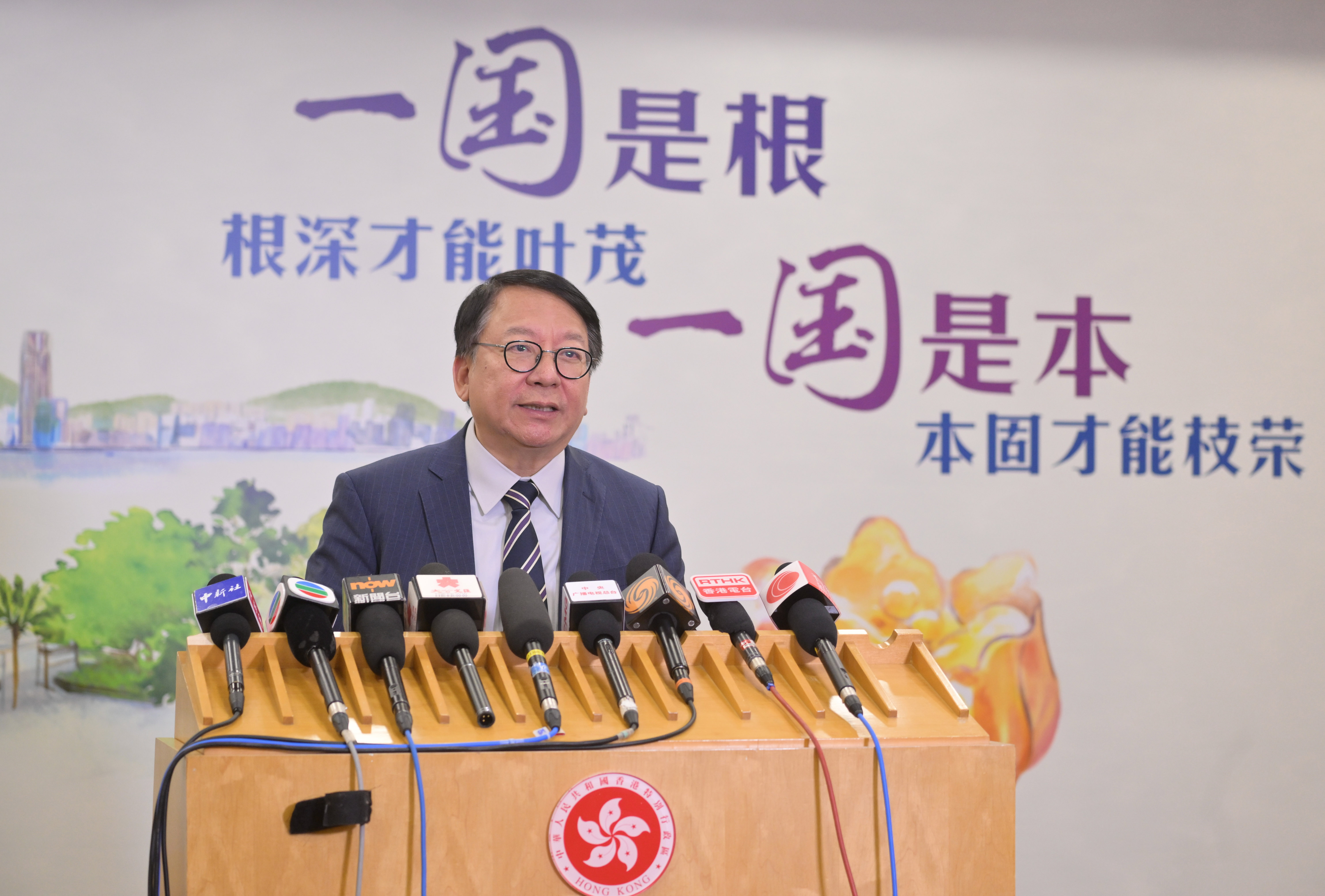 陳國基說,今早拜會國務院港澳事務辦公室主任夏寶龍,指夏寶龍關心香港,且對特區政府依法施政再次予以充分肯定和支持。特區政府承諾會全面準確、堅定不移貫徹「一國兩制」方針,依法施政,發展經濟和改善民生,保持香港長期繁榮穩定。