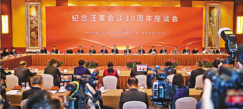 (香港文匯報 記者 朱燁)中共中央台辦、國務院台辦、海峽兩岸關係協會主辦的紀念汪辜會談30周年座談會4月28日在北京舉行。30年前,在兩岸堅持體現一個中國原則的「九二共識」政治基礎上,海峽兩岸關係協會會長汪道涵與台灣海峽交流基金會董事長辜振甫在新加坡舉行會談,實現了兩岸雙方首次以受權民間團體名義舉行高層會談,標誌着兩岸關係發展邁出歷史性的重要一步。