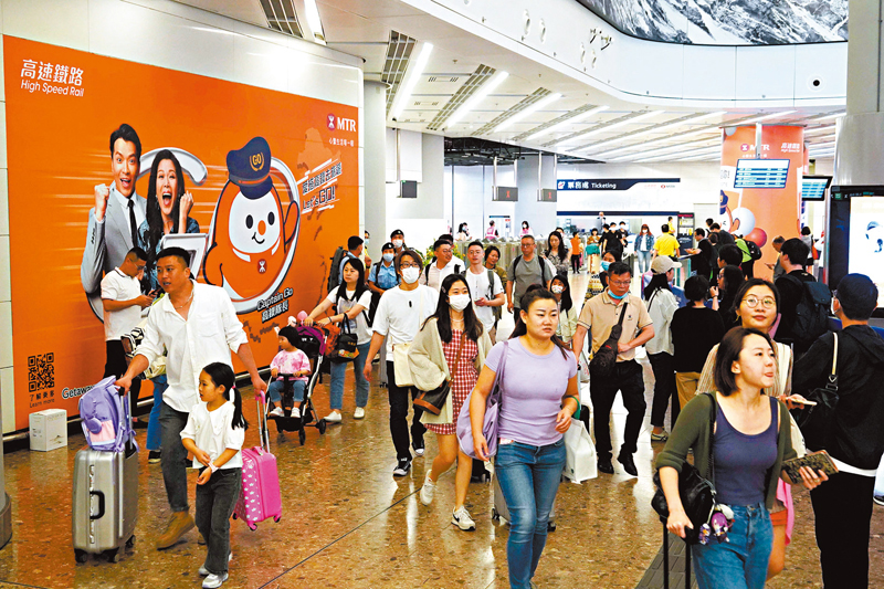 香港旅遊發展局在高鐵西九龍站內向旅客派發「香港有禮」電子優惠劵,有不少旅客領取。旅客在掃描二維碼後可選擇領取不同優惠券,可換取指定餐廳現金券以及港鐵遊客全日通。有來自南京的遊客表示,由於有朋友在香港讀書,故趁五一假期來港探望朋友及旅遊,但直言香港的酒店房租高昂。