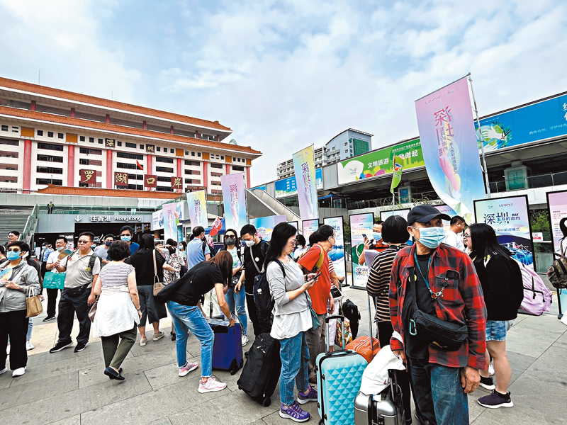 昨日,羅湖區文化廣電旅遊體育局於羅湖口岸廣場舉行「五月的邀約」港人遊深圳迎團儀式,為旅遊的港人代表送上小禮品,包括水樽、雨傘、流動充電器、小風扇等出行用物。現場還為港人推薦深圳本地遊路線,如參觀地王大廈、深圳新的文化地標金啤坊、筍崗藝展中心、深圳珠寶博物館、大芬油畫村等兩日一夜市區路線。