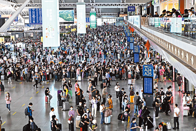 廣鐵分析,今年「五一」假期客流呈井噴式增長,主要是因為內地及港澳地區經濟社會全面恢復常態化運行,區域經濟發展呈現回升向好態勢;而中斷3年的廣交會重啟,加上春暖花開進入旅遊旺季,帶來了大量的商務流和旅遊流。