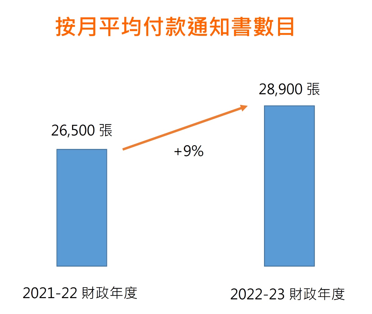 劉麥嘉軒表示,積金局會向違規僱主發出付款通知書,要求僱主補交拖欠供款及相等於欠款款額5%的附加費,欠款和附加費全數歸僱員所有。但並非全部僱主都在到期日前補交欠款和繳付附加費,以2022-23財政年度為例,在積金局發出付款通知書後,當中只有約3成是在到期日(即通知書發出日期起計14日內)或之前清繳所有欠款和附加費。
