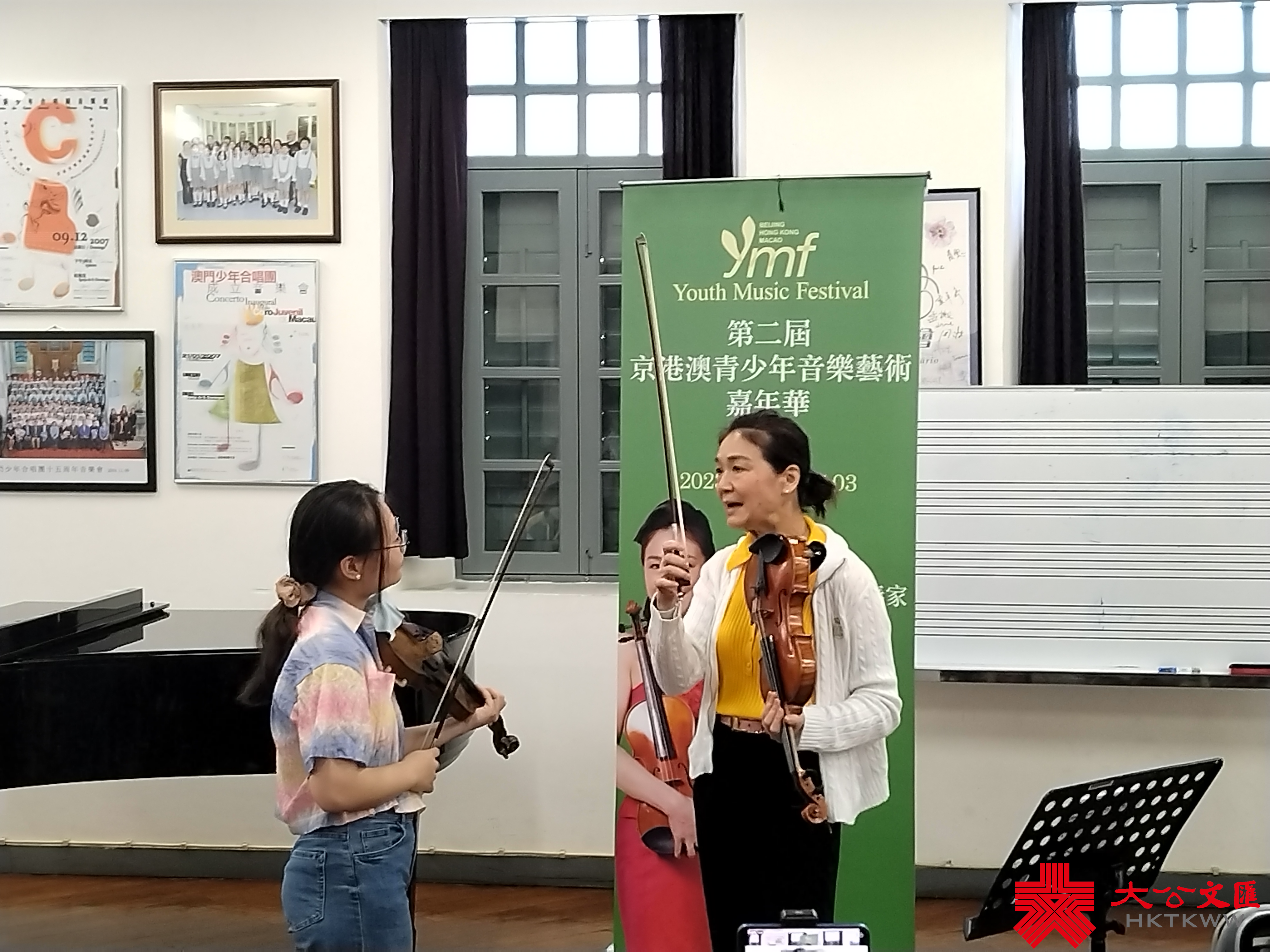 (大公文匯網 記者 馬曉芳 澳門報道)「你好我是小提琴手,來自北京,」「你好,我演奏的是雙簧管來自澳門」……五一假期第一天,來自內地和香港的數十名青少年薈聚澳門,共同參加第二屆京港澳青少年音樂藝術嘉年華,大家一見面就熱情交流起來。29日晚,三地青少年們在澳門青年交響樂團協會匯合,開始第一場京港澳交響樂合練。在30日上午,三地學生來到澳門演藝學院,共同傾聽京港兩地演奏家的大師課,演奏家們讚嘆青少年們技藝的同時傾力指點,一對一傳授經驗。