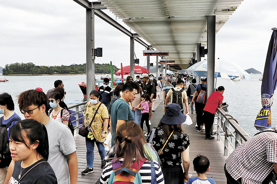 香港文匯報昨日在西貢直擊所見,有不少遊人到當地遊玩,人潮絡繹不絕,但遊人租船出海的船公司表示生意未如疫情時候理想,其中西貢碼頭的船公司負責人石先生解檡,復常通關後,本地市民假期時多選擇外遊,除北上外,有時間的會到泰國及馬來西亞等,「現在50元的船票,就算降價都覺得少人坐。」