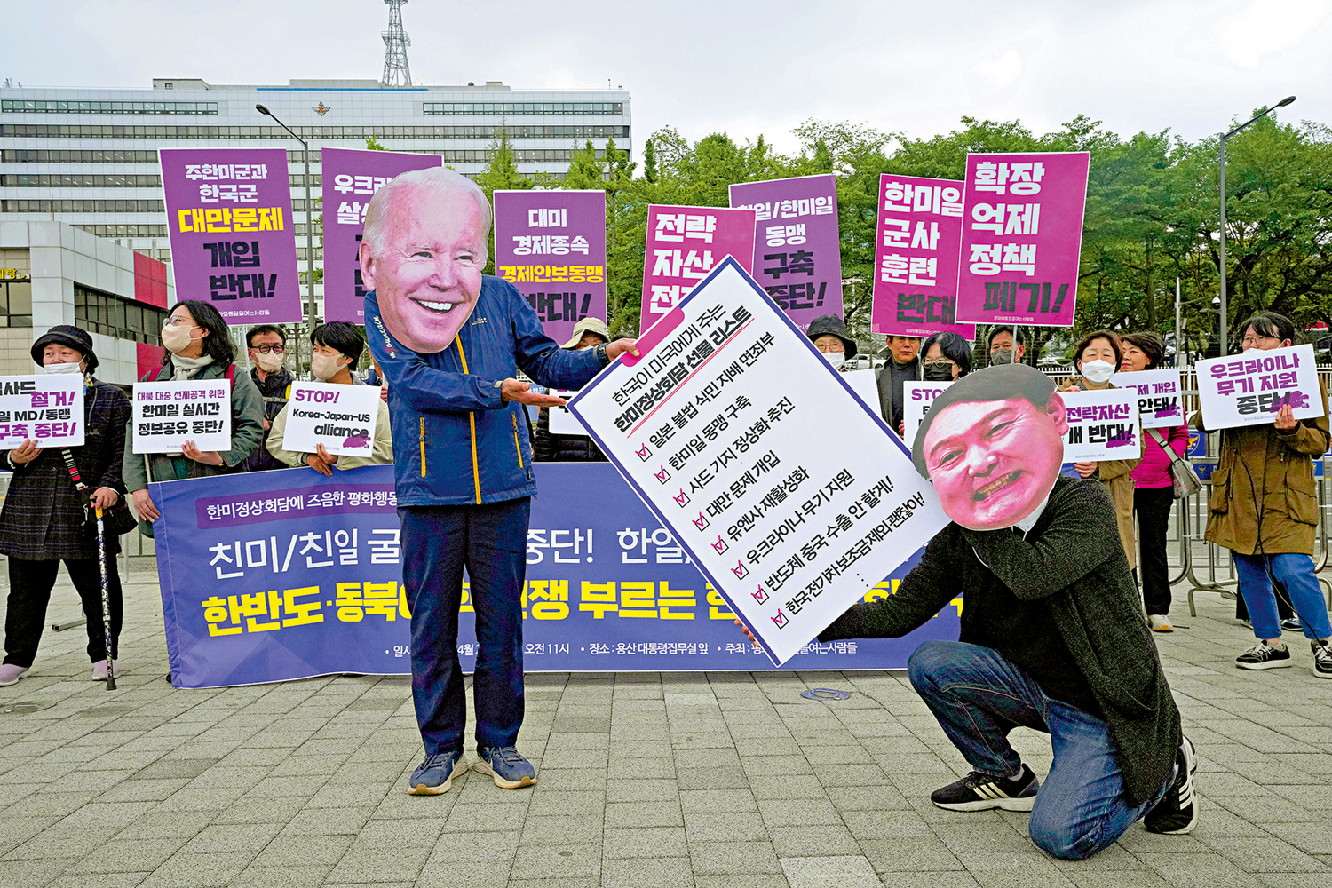 尹錫悅將與美國簽署的《華盛頓宣言》視作自己此行一大成果,但韓國民眾越來越懷疑美國會否在戰爭爆發時伸出援手。首爾朝鮮研究大學教授金東葉表示,這份聲稱要加強對朝鮮震懾的宣言實際上是個空殼。