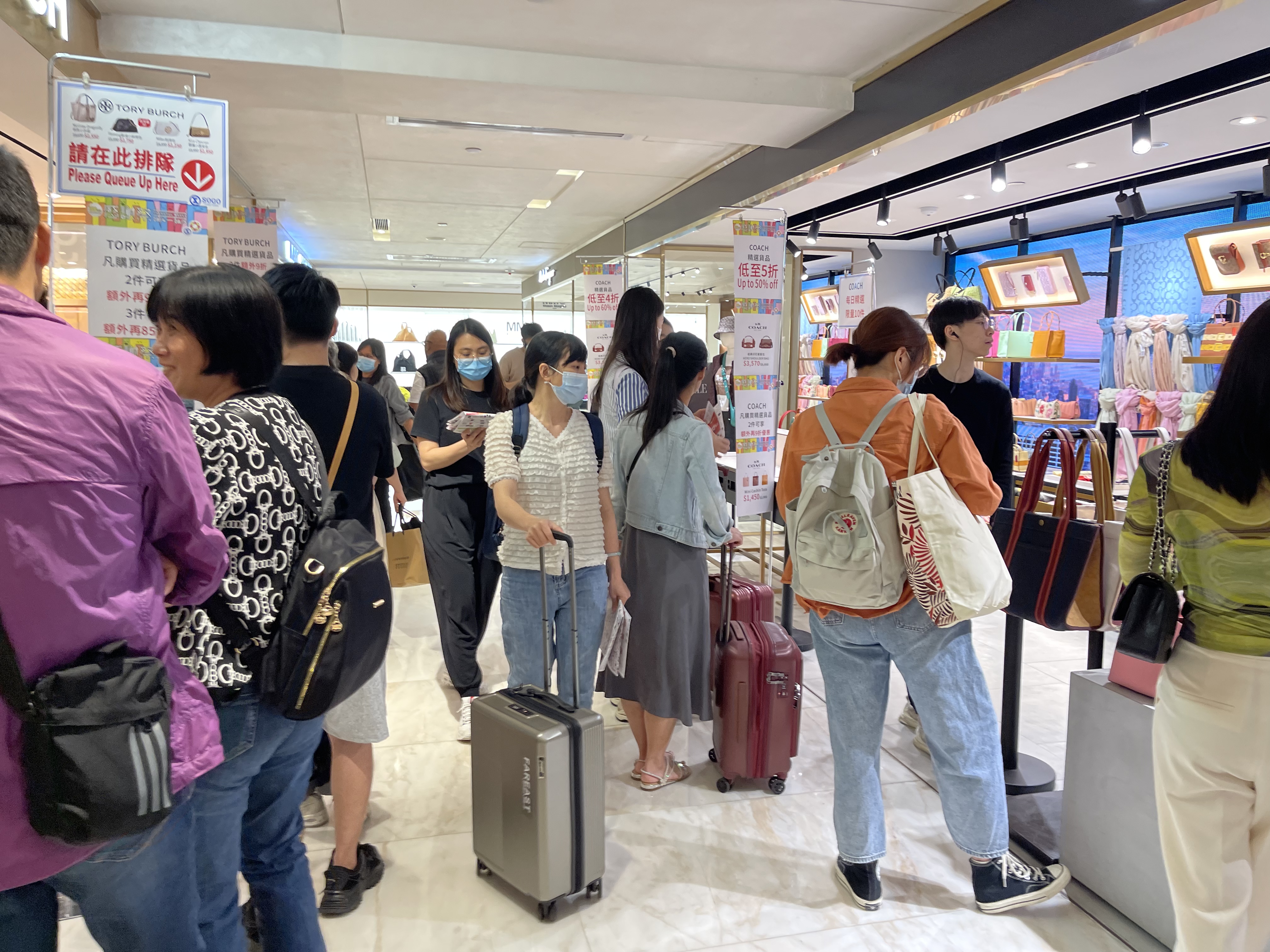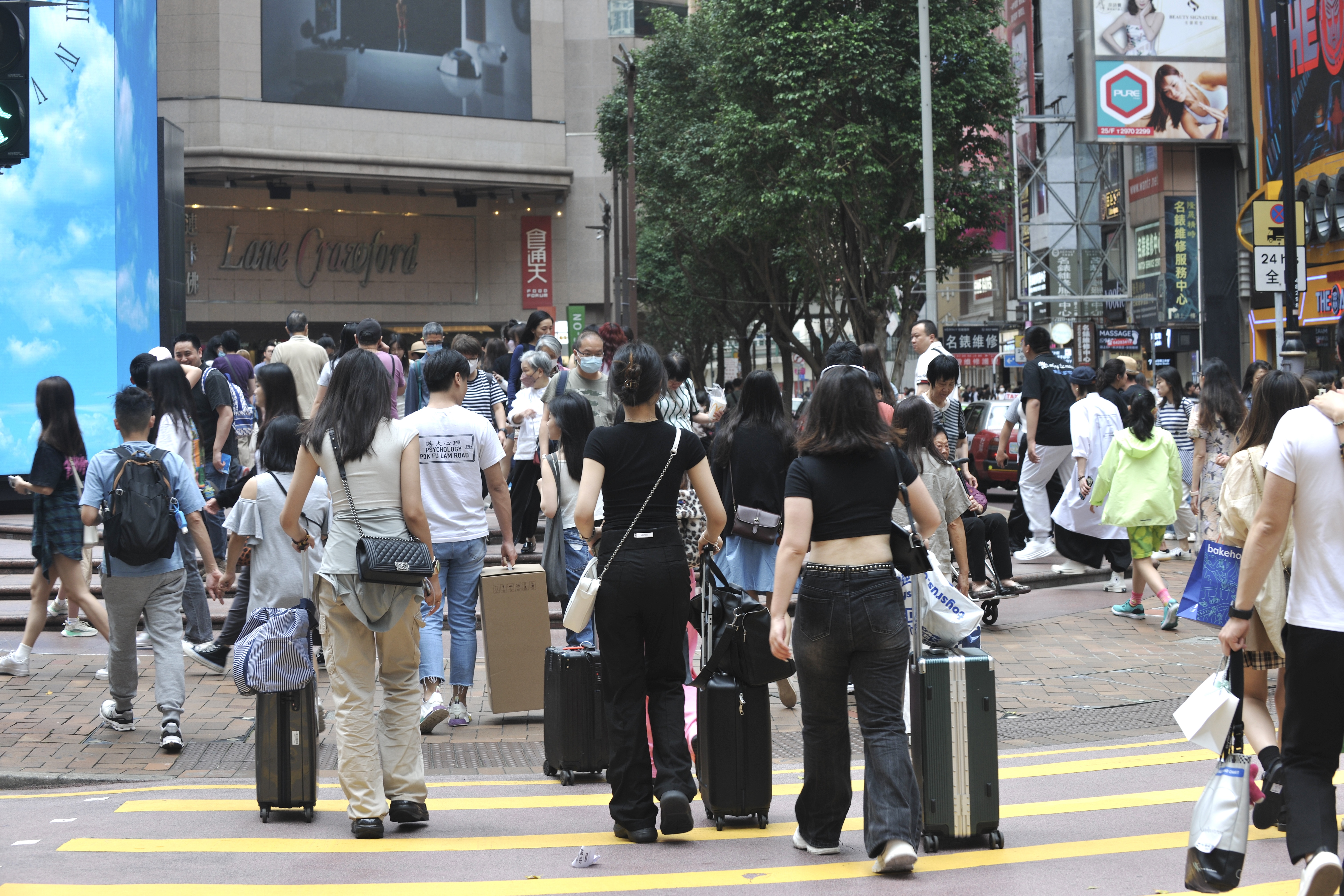 (大公文匯全媒體 記者 劉陽)今日(5月1日)是國際勞動節,同時是內地「五一」黃金周長假第三日。記者來到銅鑼灣街頭,看到街上人山人海,不少市民紛紛出街購物,同時也有許多遊客拖着行李箱、或者拎着大包小包在銅鑼灣瘋狂「血拚」,滿載而歸。