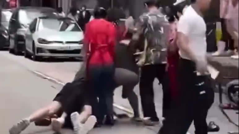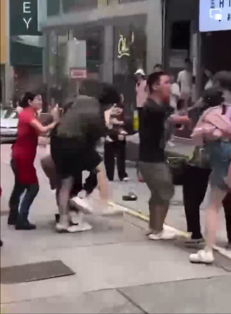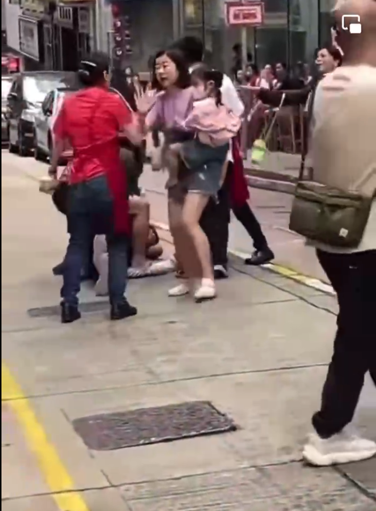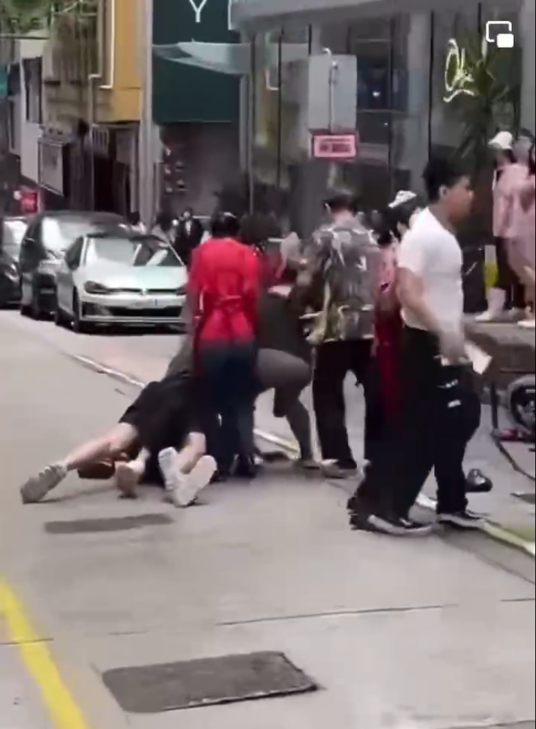 網上流傳一段影片,多名男女在中環士丹利街馬路中心混戰。據了解,事件源於一名內地男遊客昨午在「一樂燒鵝」落單時,出現溝通問題,遊客出手、出腳襲擊店舖女負責人,負責人的兩個兒子試圖阻止,結果變成混戰。其中一名兒子與施襲遊客同告受傷。警方接報到場調停,最終將案件列作「糾紛」,無人被捕。